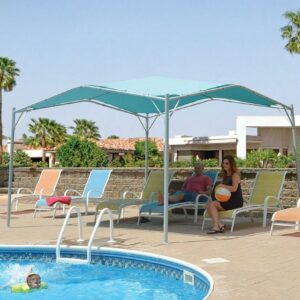 “Get the stylish look of a gazebo in an easy to assembly unit. The 12 x 12 ft. Monterey Canopy in teal features an attractive new shape making it different from many other popular backyard canopies. It is easy to assemble and provides ample shade, making i”