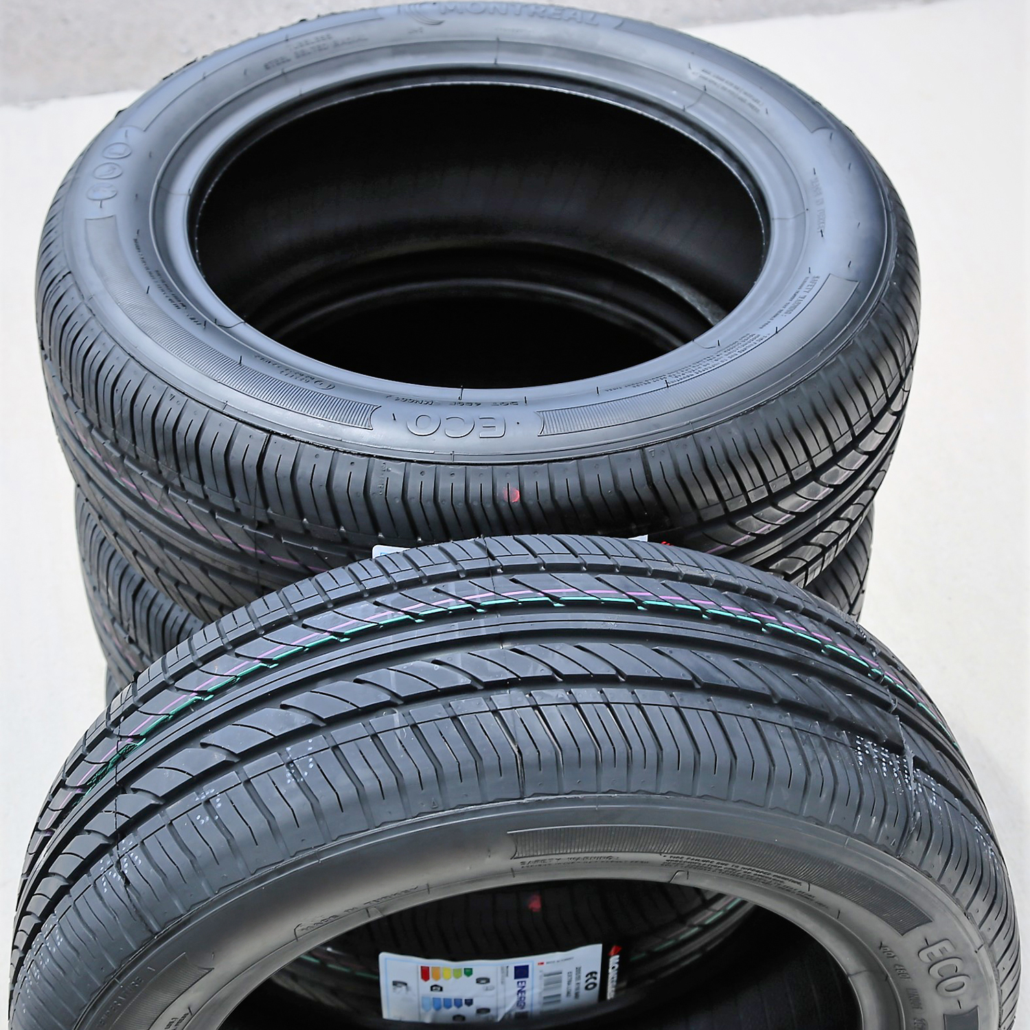 Montreal Eco OVERVIEW The Montreal Eco is a performance and high performance, all season tire manufactured for passenger vehicles. This model has some touring sizes available as well. The tire promotes great all season traction. All season compound and a detailed tread design increase the work together to greatly upgrade the dry, wet, and winter weather grip on the road surface. The tread elements with the siping and groove pattern upgrade the traction with the use of extra biting edges, while the compound keeps the rubber flexibility in versatile weather conditions. The circumferential grooves disperse water and slush from the footprint in wet weather conditions. This combination enables the tire to greatly improve the versatile weather condition performance. The tread elements also maintain the surface contact at all times. The tread design’s solid center rib ensures the surface contact while the tires are in motion, greatly boosting the steering responsiveness and driving stability. In other words, the close and consistent surface contact upgrades the steering response time and accuracy to the driver’s commands. The structure is also optimized against the driving pressure affecting the tire during the performance. This combination guarantees the driver’s constant control over the vehicle, promoting a safer driving experience. The Eco improves the maneuvering ability as well. The detailed elements utilize the shoulder blocks and the angled groove and block pattern greatly upgrade the cornering and braking ability. The block pattern enhances the grip on the road surface with extra biting edges, increasing the cornering and maneuvering power. The sipe and groove placement generate friction at the moment of braking, significantly shortening the overall braking distance. The combination ensures the tire’s exceptional driving safety levels. Manufacturers recommend changing tires every 10 years. As long as tires are properly stored before they are sold, the year of their manufacture will not shorten their service life.