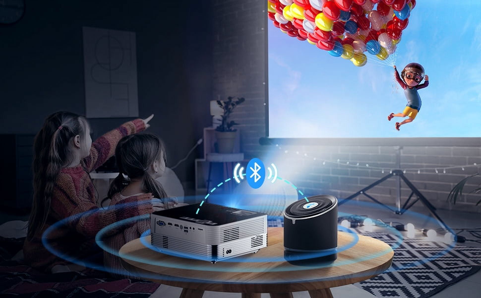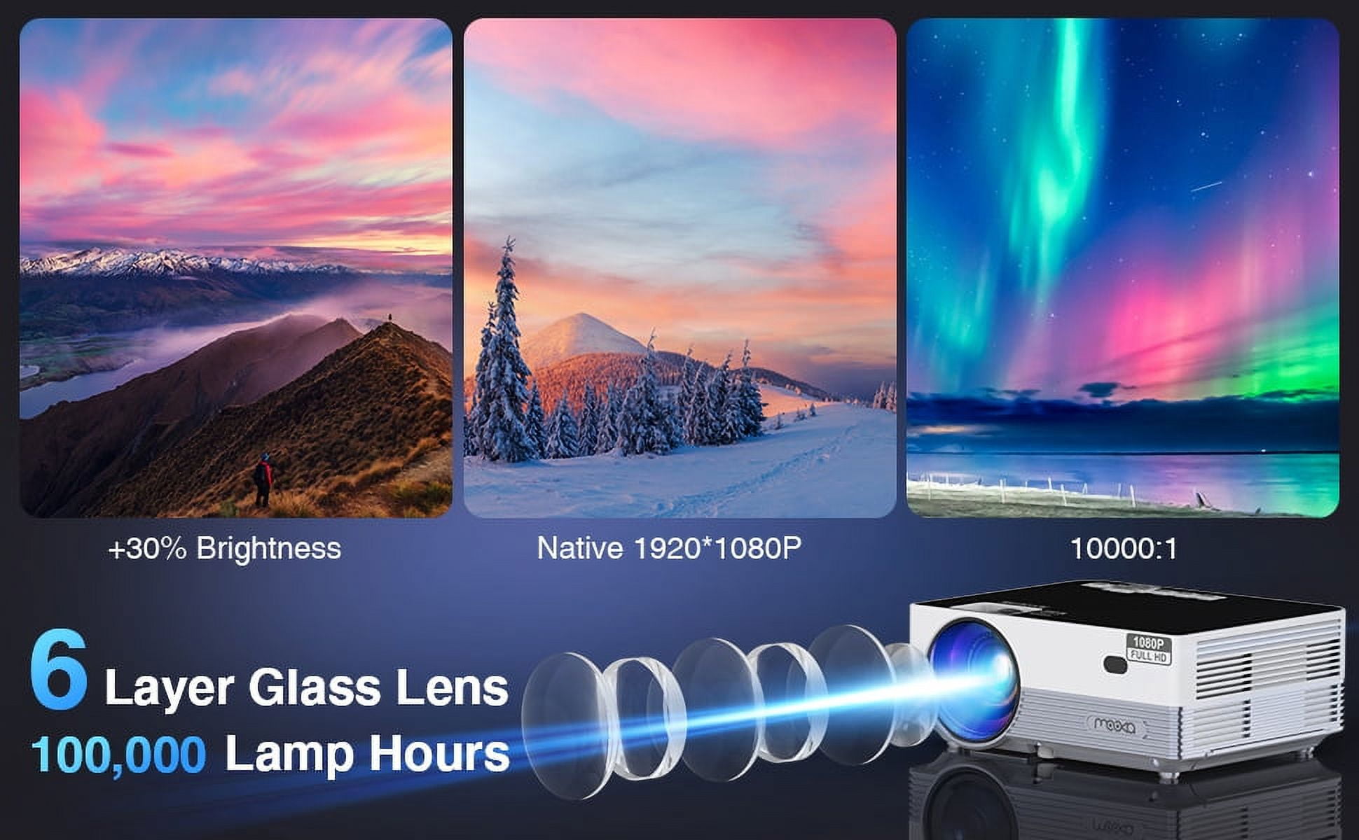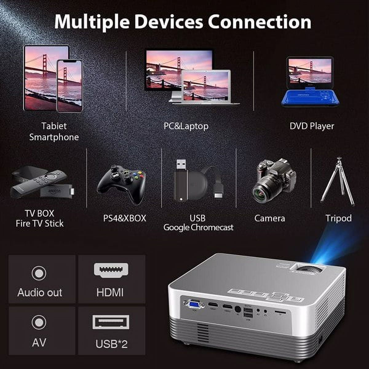 [Native 1080P& 8500L&Extra Carry Bag]–Equipped with advanced color technology, MOOKA Q6 is native 1920*1080P projector with outstanding 8500 lumens brightness,up to 10000:1 contrast, which is four times higher than 720P projectors,delivering superior clearer and sharper visual feast for you.Q6 mini portable projector is smaller and lighter than other bulky 1080P projector with same specifications range. You can also get an extra carry bag, it’s very convenient to carry and store your projector. [Convenient WiFi Connection&Zoom Function]–With upgraded WiFi connection function, MOOKA Q6 mini WiFi projector makes the connection bewteen projector and your iOS/Android devices more easier. No need to buy extra cables or adapters, Q6 wifi projector can mirror movies, videos, apps, games, photos on your iOS/Android devices to big screen anytime. With zoom function, you can easily adjust the screen size from 100% to75% by remote, it is very convenient if you hang the projector on the ceiling. [300″ Giant Screen&Advanced Cooling System]–Q6 video projector offers 45-300″ ultra big screen with projection distance of 1.5-10m.(Ideal distance is 3 meters) 300″ giant screen brings more joyful and immersive home theater feeling for you,gives more care to your eyes.Q6 projector is equipped with the latest innovative cooling system with 2 fans running simultaneously,which greatly improves heat dissipation effect and minimizes lamp consumption to extend lamp life to a maximum of 100,000 hours. [Bluetooth 5.0 Function&Multiple Connection]-Apoting the latest Bluetooth 5.0 chip,Q6 bluetooth projector can easily wireless connect your bluetooth speaker anytime.Built-in two 3W HiFi stereo speakers and SSR audio system,Q6 provides superior sound experience without external speakers.Q6 offers various input solutions,convenient to connect with mutiple devices,easily meets your daily needs,movies,party and game.With Q6,enjoy relaxing and wonderful leisure time with your family and friends. [1 Year Repair&Lifetime Professional Technical Support]–MOOKA has 10 years experience in producting projector, we aim at providing high quality projector.We provide1 year maintenance service and lifeltime professional technical support.