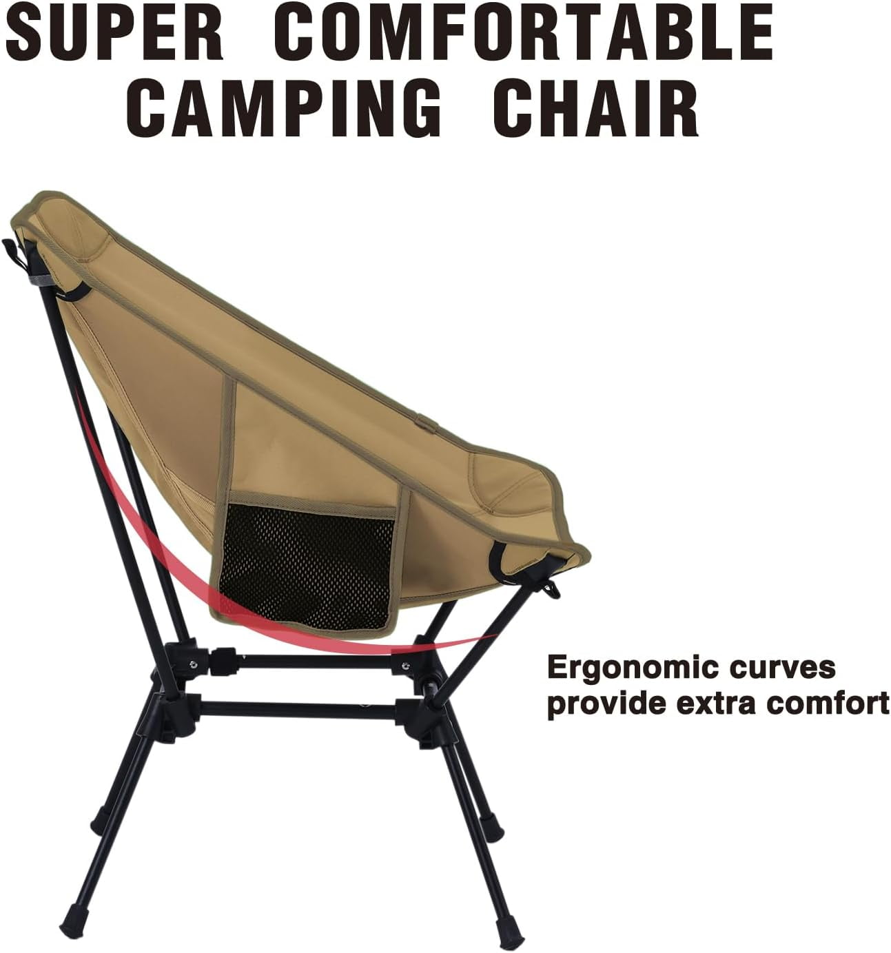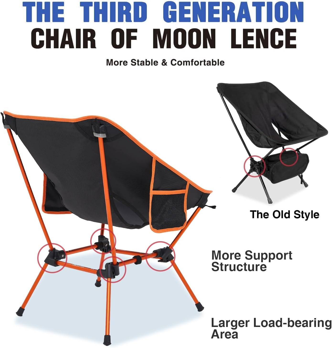 MOON LENCE Camping Chair Compact Backpacking Chair Folding Chair with Side Pockets Portable Chair Lightweight Heavy Duty for Hiking & Beach