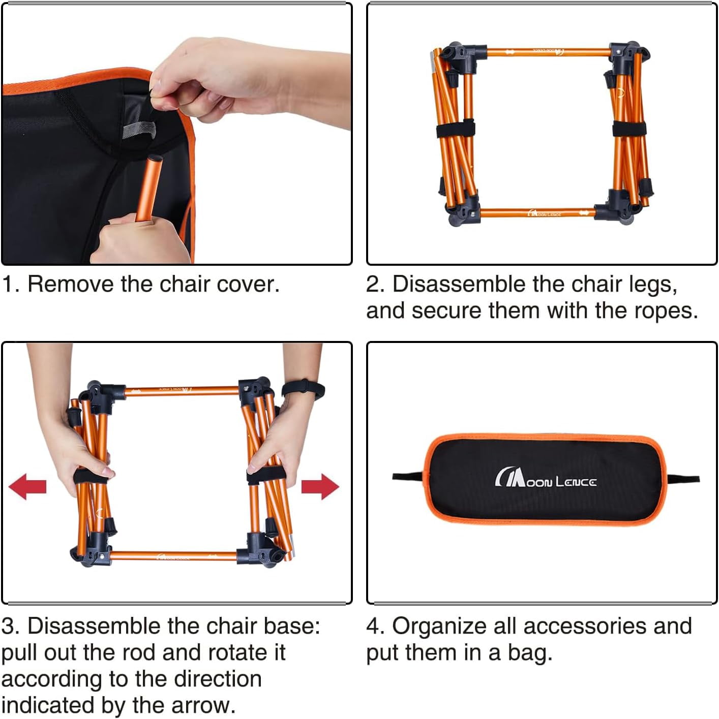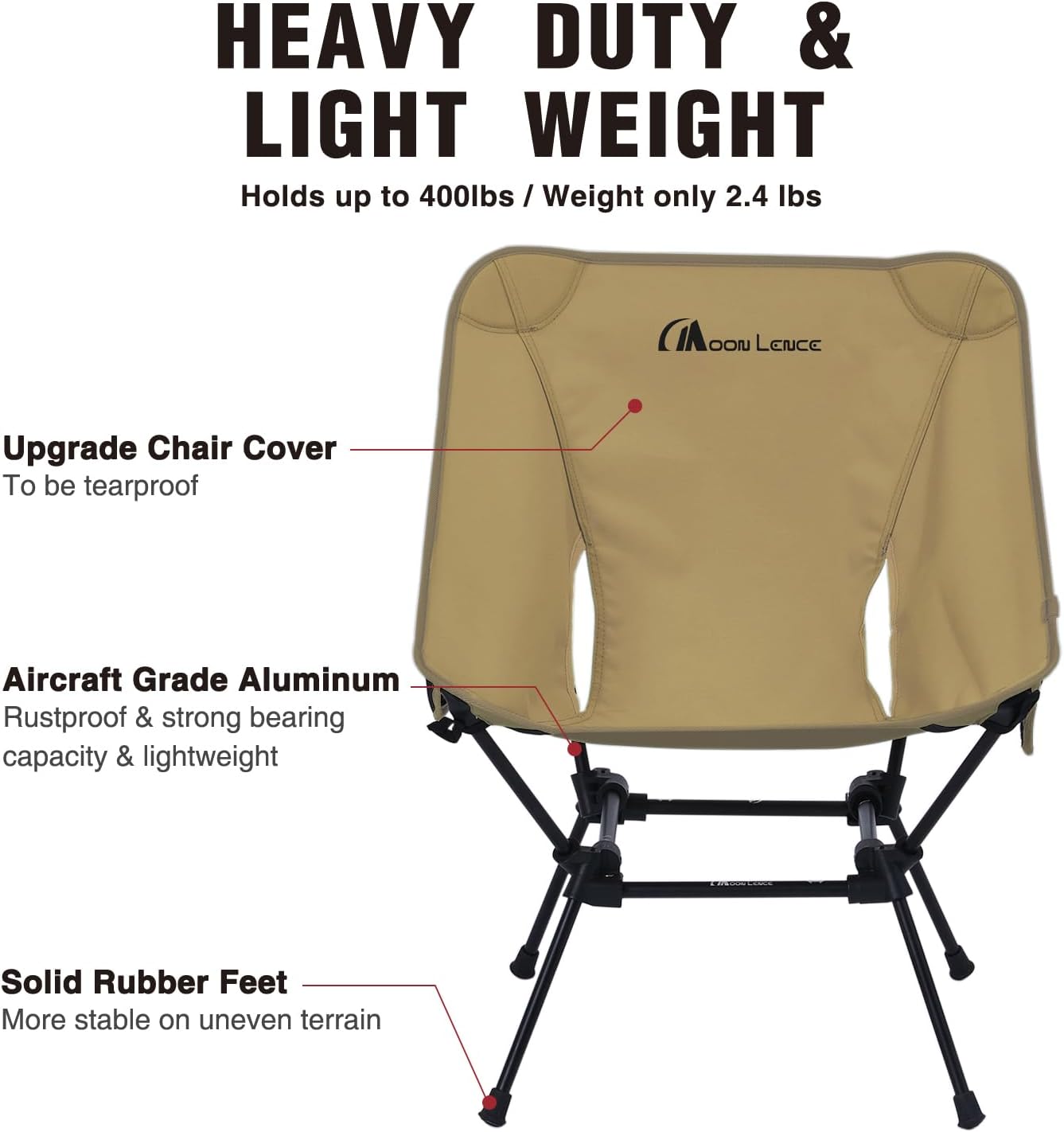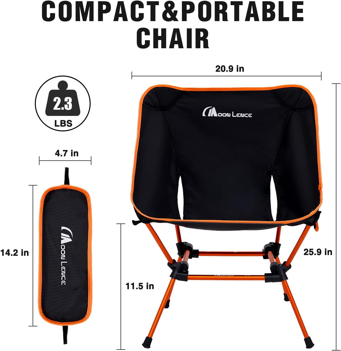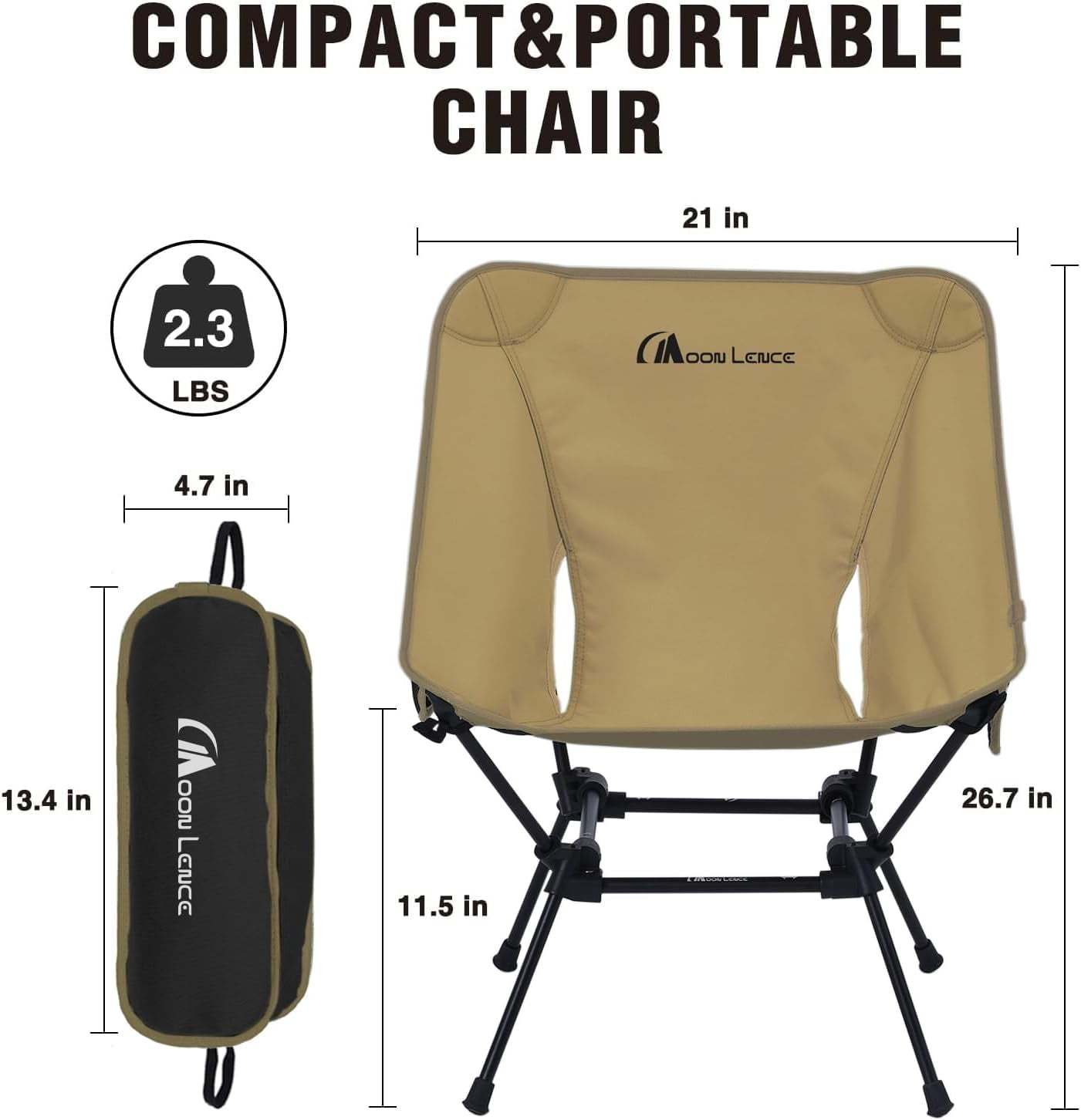The THIRD GENERATION CHAIR of Moon Lence Aircraft Grade Aluminum: Weights only 2lbs, but holds up to nearly 400lb/180kg. Ripstop Chair Cover: Made of 900D Oxford ripstop ballistic nylon with double seams, to be real rip-proof. The travel camp chair is Built to Last. Portable Outdoor Chairs for Anywhere: Compact enough to put into your backpack or carry-on luggage. Side pockets can store some minor stuff. Must-have Camping Accessories: This small foldable chair is versatile and suitable for all outdoor adventures or everyday indoor use, which can be used for camp barbecues, picnics, beach days, backpacking trips, festivals, and concerts. ★We are committed to providing the best portable folding chair. We work hard and will always work hard to make it come true. If you don’t like our product or have any suggestions, don’t hesitate to contact us and we will serve you until you are absolutely satisfied.