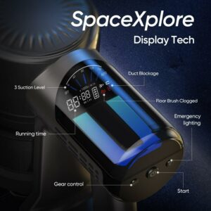 LED Display: The futuristic LED display screen shows real-time information, including battery levels, suction mode, and brush roll status, providing a hassle-free cleaning experience. Display has a 3-color breathing light that changes the color of the light with the suction mode.