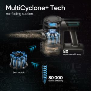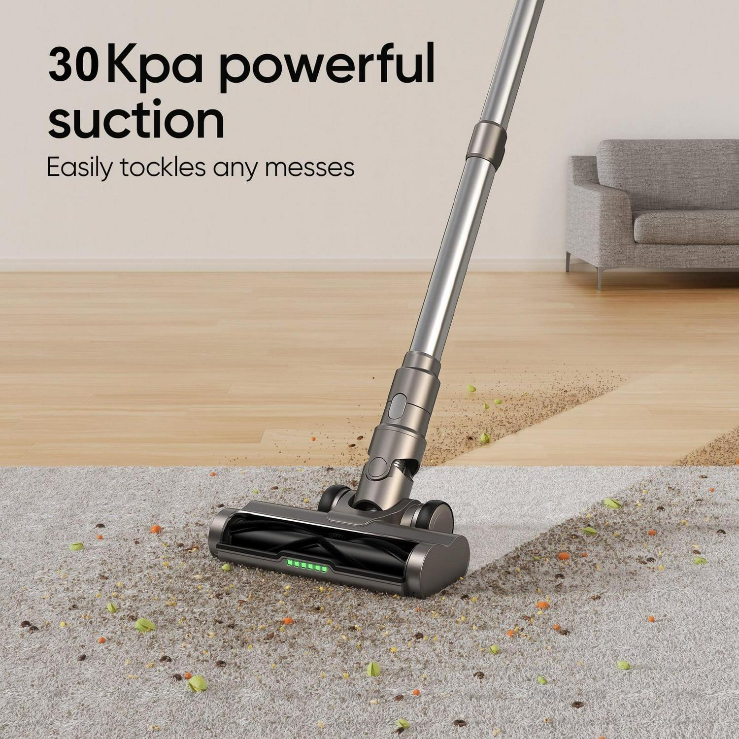 Powerful Suction: Equipped with a 420W brushless motor, the cordless stick vacuum cleaner provides strong suction power of up to 30Kpa to pick up dirt, debris, and pet hair on various surfaces.