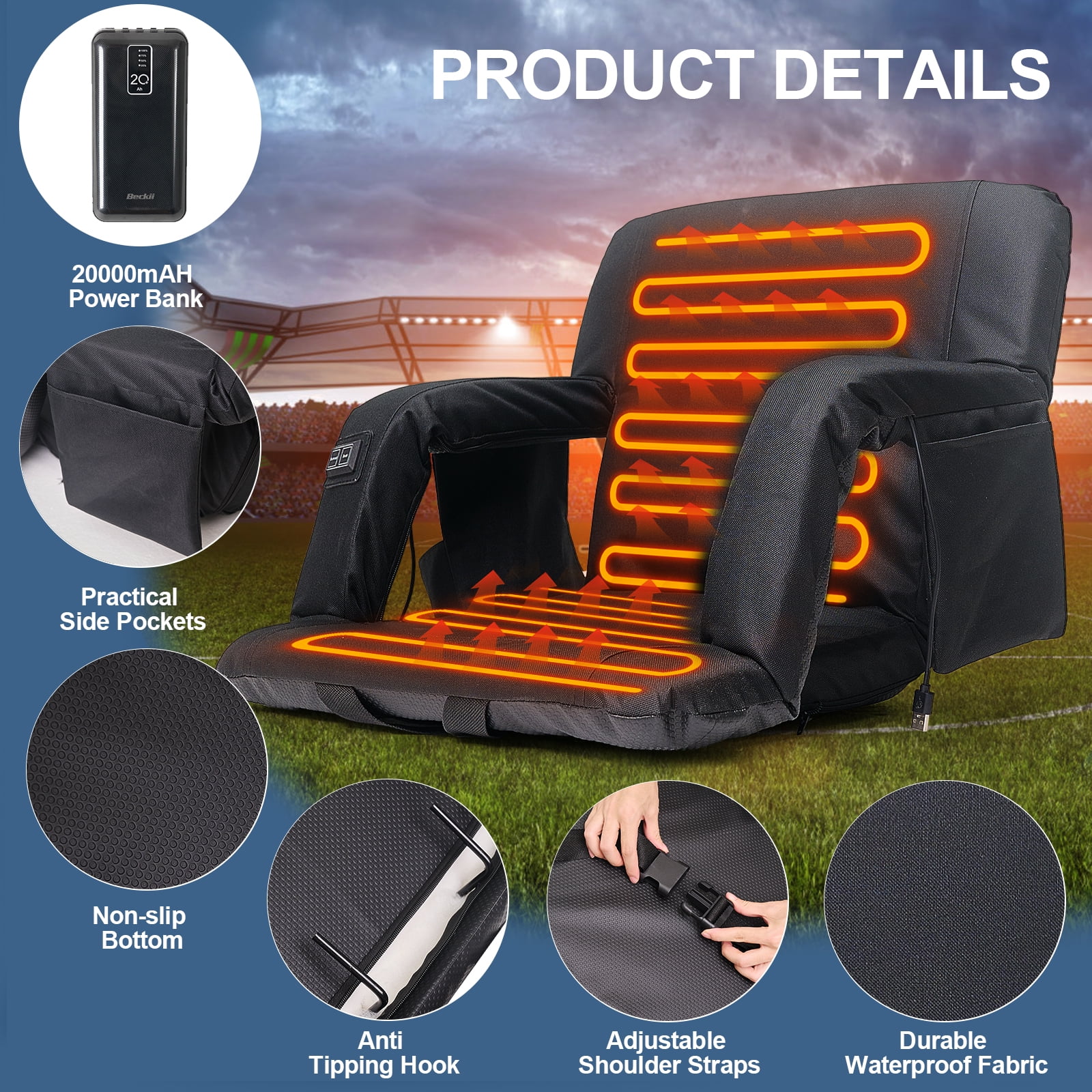 MOPHOTO Heated Stadium Seat Bleacher Seat with Back & Arm Support, Portable 6 Reclinng Positions Stadium Seating for Bleachers, Bleacher Seats for Sports Events, Outing, Travelling, Hiking