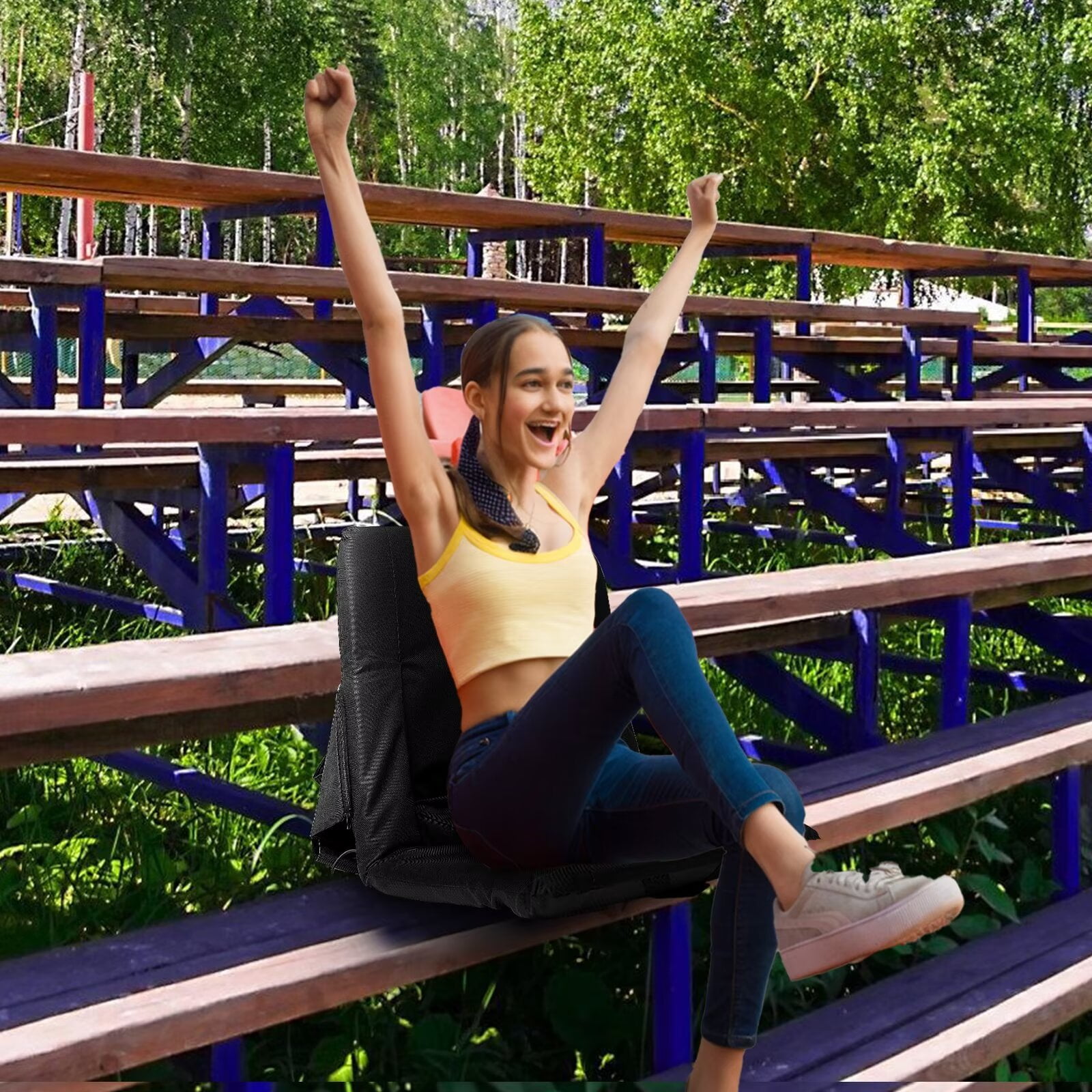 With a dual zone independent control heating design, the heating area is larger and the heating effect is bette. Two controls respectively control the heating of the bottom and backrest. You can choose to heat the bottom or backrest according to your actual needs, or insert two wires into different power banks (power banks are not included in the package) to heat both the bottom and backrest at the same time. Stadium seats with heated back and bottom. More Heat, More Comfort for you. Provides the ultimate warmth and comfort for your body in cold weather, keeping you warm and comfortable while you enjoy watching the game to the fullest. Two controls respectively control the heating of the bottom and backrest. You can choose to heat the bottom or backrest according to your actual needs. The heated bleacher seats can avoid the muscle soreness caused by sitting for a long time, you can focus more on your game or performance. The heated stadium chair has 6 reclining options, you can choose the most comfortable position to enjoy your happy time. Our Stadium seats for bleachers designed with 2 hooks and one fix strap for more stable use. It can be secured easily and quickly to most bleachers and benches.Which is not easy to move and more stable.NOTE:The spring hooks are hidden inside the bottom zipper. The heated stadium seat is an excellent choice for any sport such as football, baseball, basketball, Olympics, World Cup, as well as outdoor activities, adventures, beaches, parks, camping, and travel. Stadium seats for bleachers are perfect for those who spend long periods of time with their children during training or waiting on the sidelines of sports events. Say goodbye to hard, chilly bleachers!