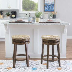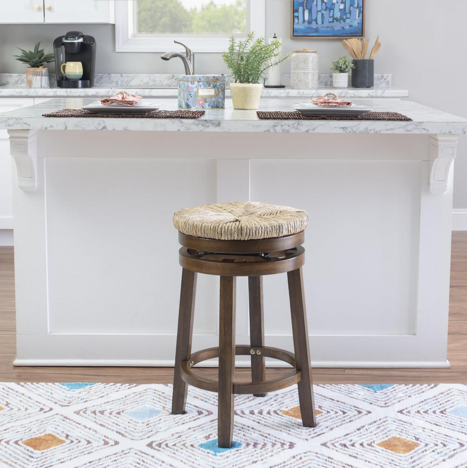 Morgan 25 Backless Counter Stool with Swivel, Walnut Brown with Natural Rush