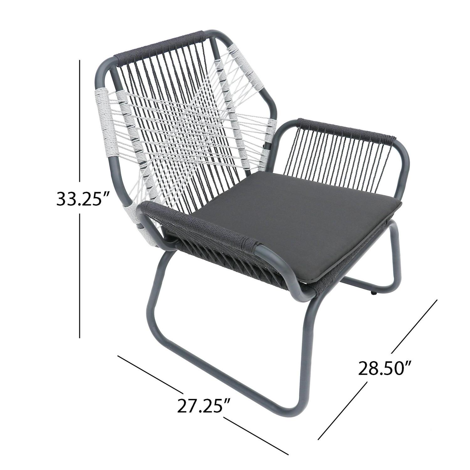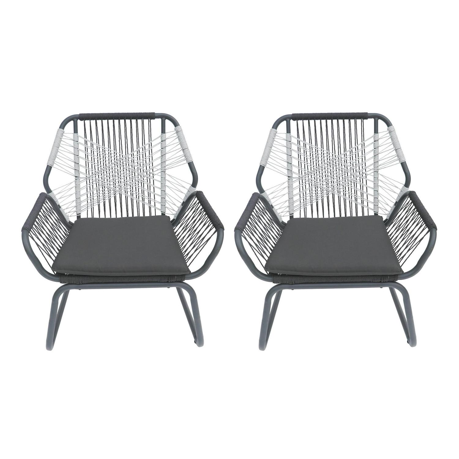 Morgan Outdoor Rope and Steel Club Chairs, Set of 2, Gray, White
