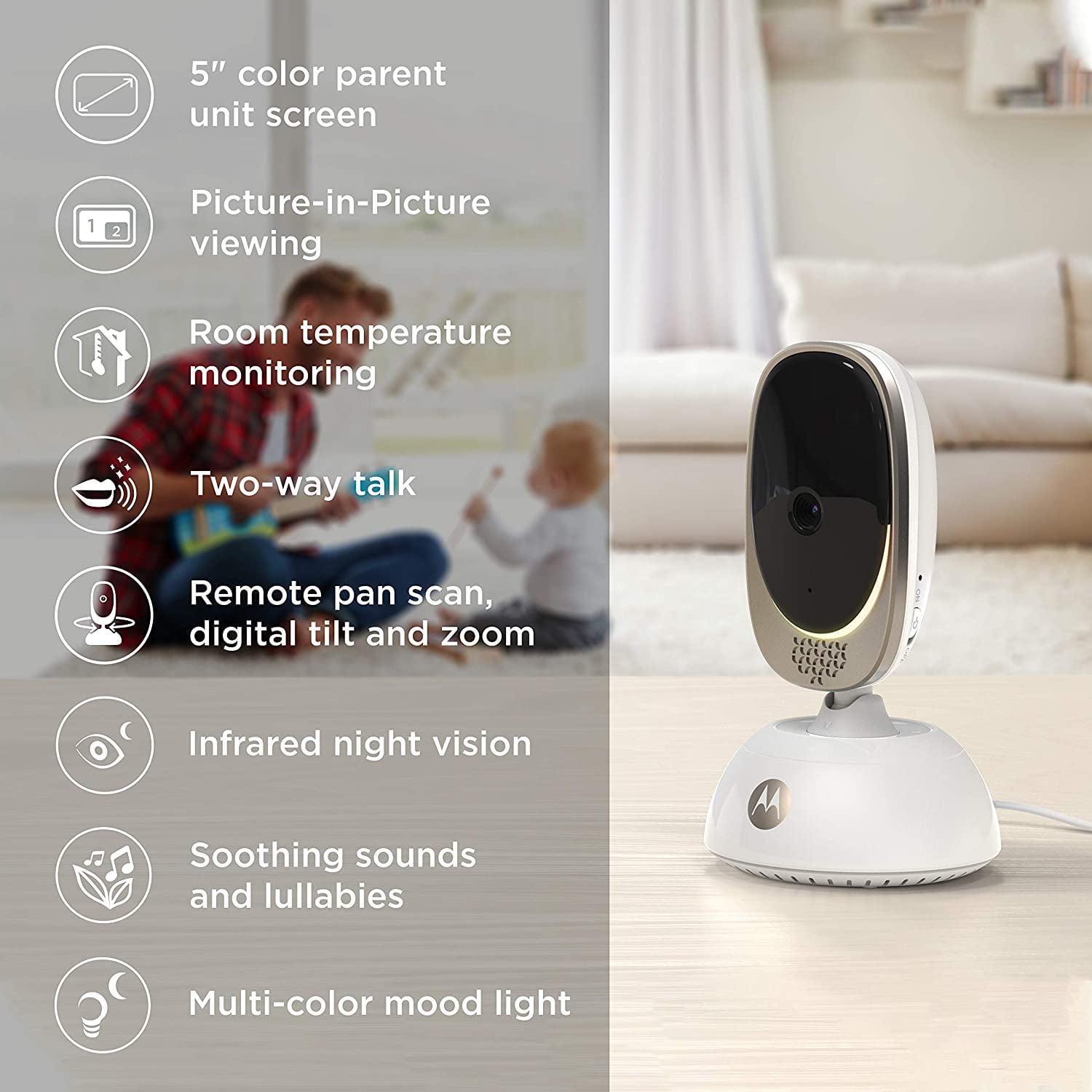 VM85-2 Connect 5″ Wi-Fi Connected Motorized Color Video Baby Monitor with Mood Light and Dual Cameras