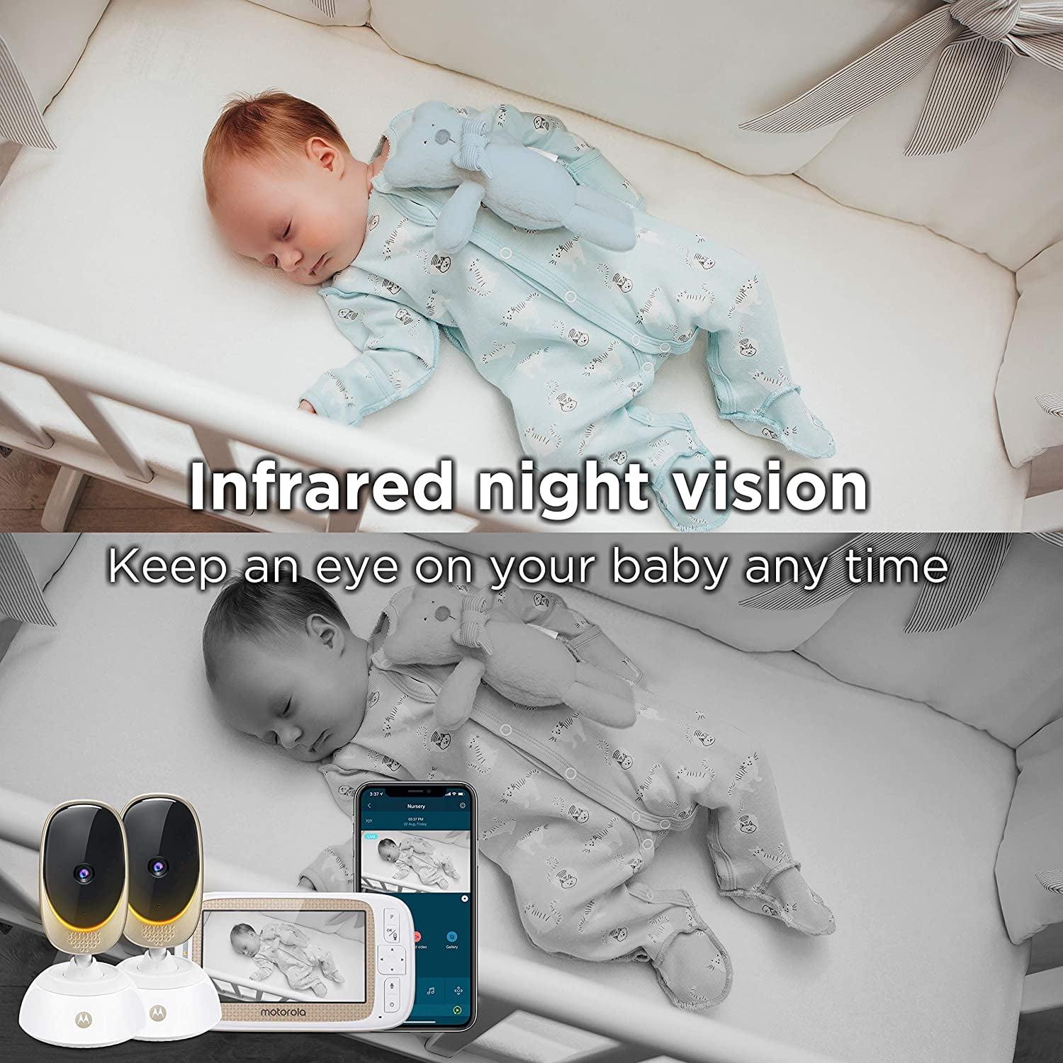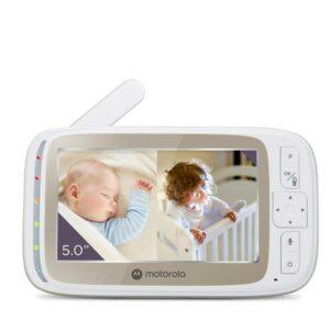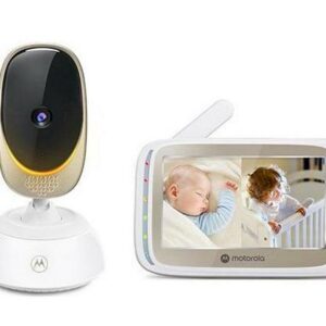 See and talk to your baby day or night with a 5-inch display and dual cameras with remote pan and digital tilt & zoom that connects to the Motorola Nursery app to enable Full HD video. Speak to, and hear your children with 2-way communication from almost anywhere. The Motorola VM85 Connect comes equipped with night vision, temperature sensor and two-way speaking capabilities. Multi-view split-screen with pan and tilt features allow you to monitor your baby’s room via the Motorola Nursery app. Calm and relax your little one with a library of pre-loaded lullabies for their fussiest nights. Wi-Fi connectivity for on-the-go viewing; 2.4GHZ FHSS wireless connectivity allows you to view your baby in HD on compatible smartphones and tablets.