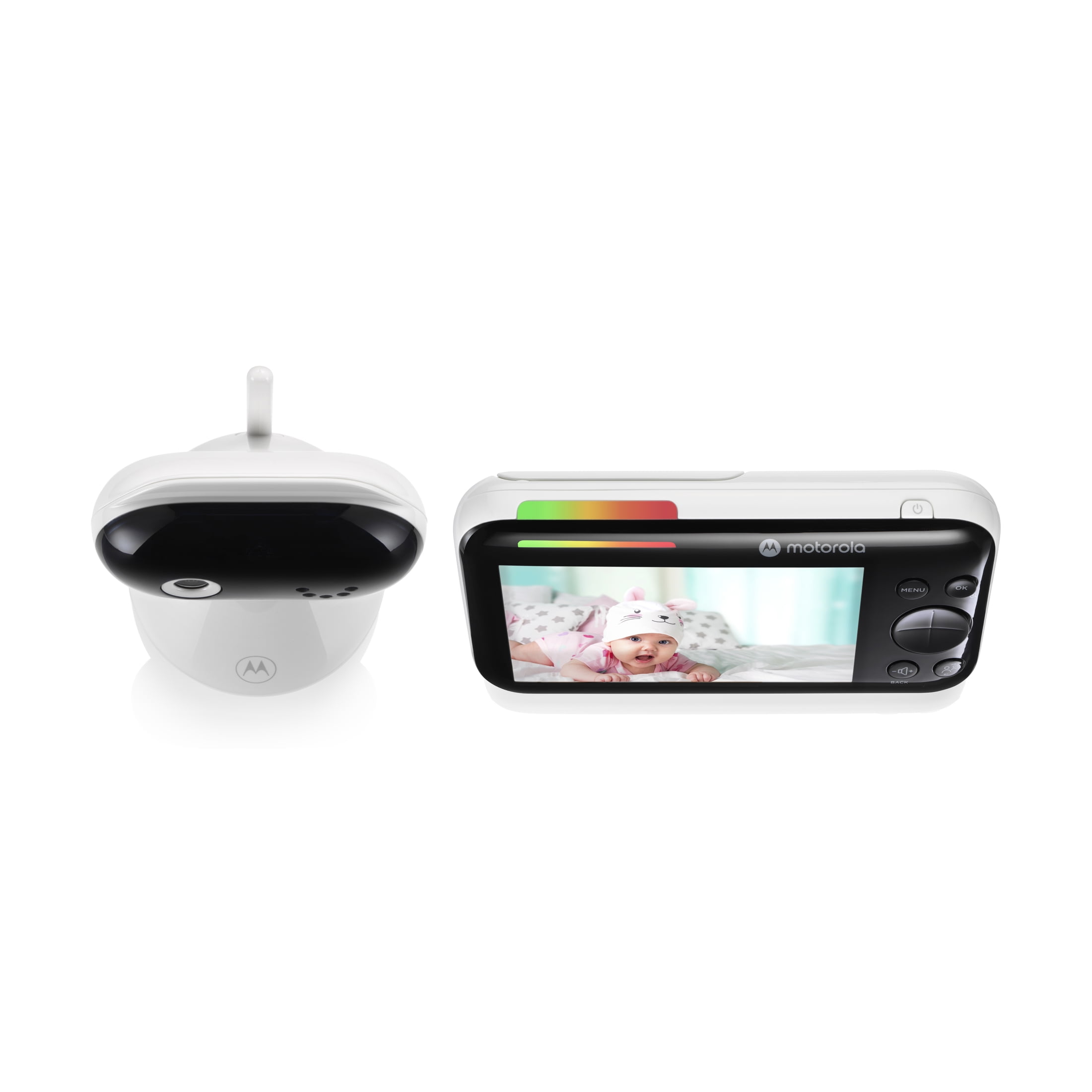 WiFi Baby Monitor: This video baby monitor has a 5” screen and camera with digital pan-tilt-zoom that connects to our app via Wi-Fi to enable HD 1080p video providing a secure, private connection. Fully charged remote has a 7-hour battery. Nursery App: Our baby camera monitor with phone access connects to our Motorola Nursery App and is compatible with Apple iOS and Android. Securely access features including two-way talk, lullaby selection, room temperature sensor and more. Safeguard your privacy with our advanced triple layer security protection. Share those previous moments securely. Using AES 128-bit, AES 256-bit encryption, and a proprietary layer of 512bit exclusive encryption. Two Way Communication – Ideal for reassuring your little one while they fall asleep in the baby nursery, our monitor with LED sound level indication acts as a 2-way intercom allowing you to speak to your precious angel with the camera’s built-in speakers. Wall Mount Included – Place your baby cam anywhere in your baby’s nursery with the wall mount for a better view of your little one. It easily attaches with the included bracket so you can have peace of mind and stay connected to your bundle of joy. Special Sound Features – This baby monitor camera with night vision includes a high-sensitivity mic that catches the slightest sounds to alert you once your baby starts crying. Included are an assortment of calming music lullabies to help your baby sleep. Two Way Communication – Ideal for reassuring your little one while they fall asleep in the baby nursery, our monitor with LED sound level indication acts as a 2-way intercom allowing you to speak to your precious angel with the camera’s built-in speakers.