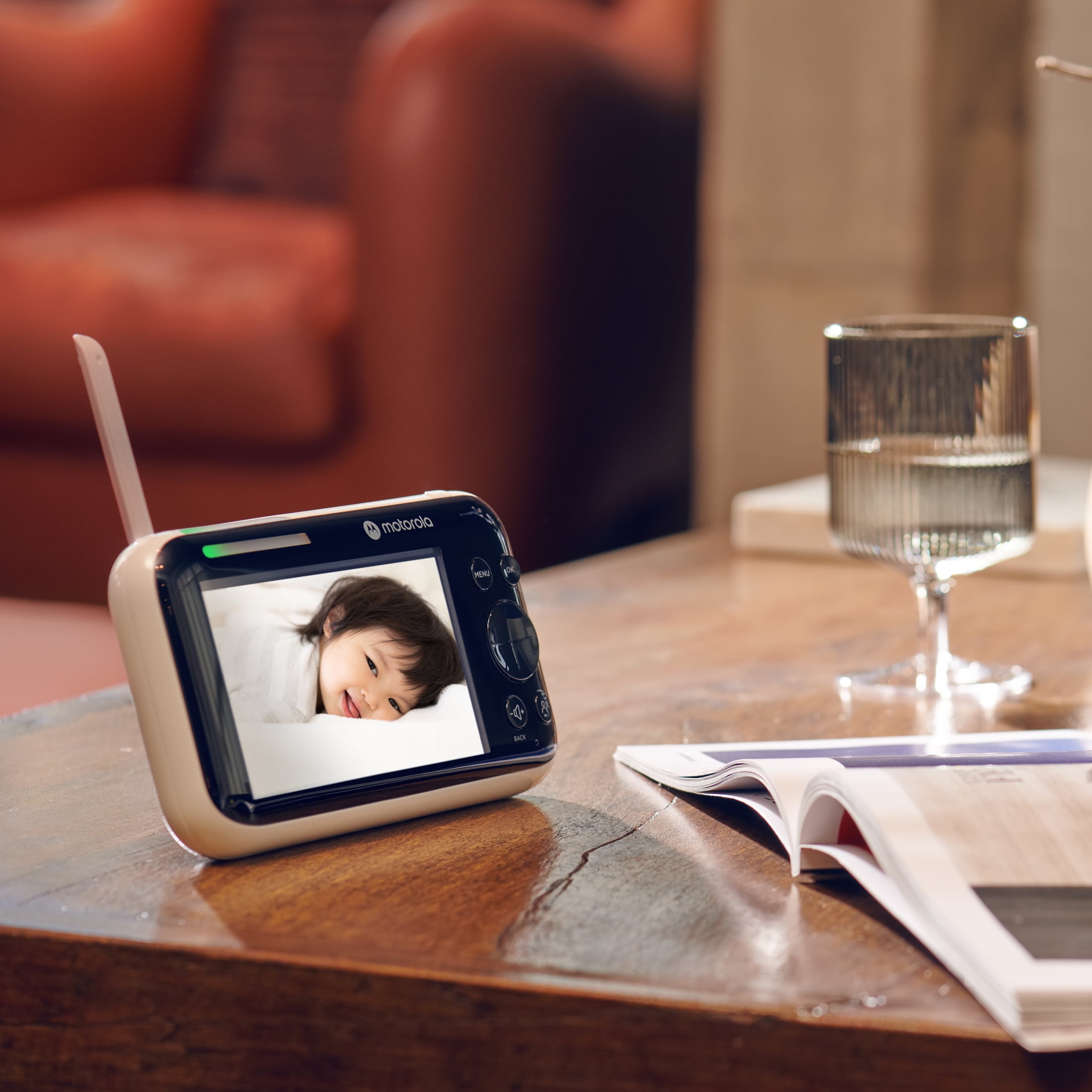 Wi-Fi Baby Monitor – This video baby monitor has a 5” screen and camera with remote pan-tilt-zoom that connects to our app via Wi-Fi to enable HD 1080p video providing a secure, private connection. Fully charged remote has a 6-hour battery. Nursery App – Our baby camera monitor with phone access connects to our complimentary Motorola Nursery App and is compatible with Apple iOS and Android. Securely access features including two-way talk, lullaby selection, room temperature sensor and more. Wall Mount Included – Place your baby cam anywhere in your baby’s nursery with the wall mount for a better view of your little one. It easily attaches with the included bracket so you can have peace of mind and stay connected to your bundle of joy. Two Way Communication – Ideal for reassuring your little one while they fall asleep in the baby nursery, our monitor with LED sound level indication acts as a 2-way intercom allowing you to speak to your precious angel with the camera’s built-in speakers. Special Sound Features – This baby monitor camera with night vision includes a high-sensitivity mic that catches the slightest sounds to alert you once your baby starts crying. Included are an assortment of calming music lullabies to help your baby sleep.