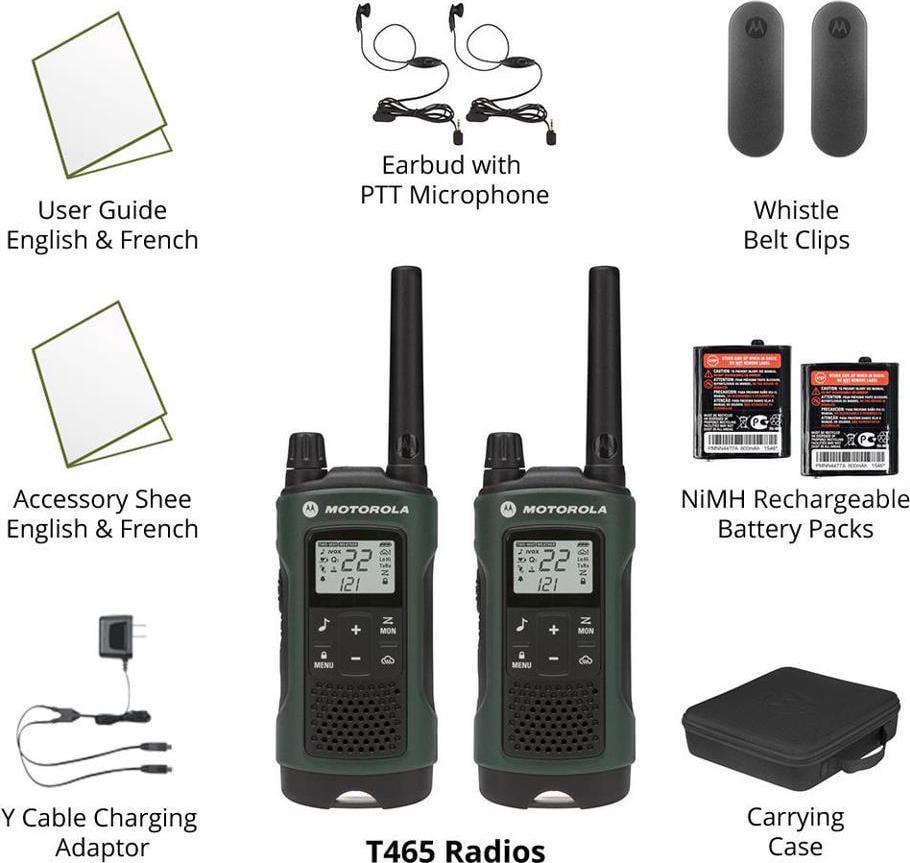 The Talkabout T465 is with features and accessories designed specifically for hunters. Just press the push-to-talk button to easily connect to your fellow hunters and campers in the forest, around the campground and even by the lake. Bring the carry case with you and fully enjoy your wilderness adventure with up to a 35 mile range, emergency features, and hands-free communication.