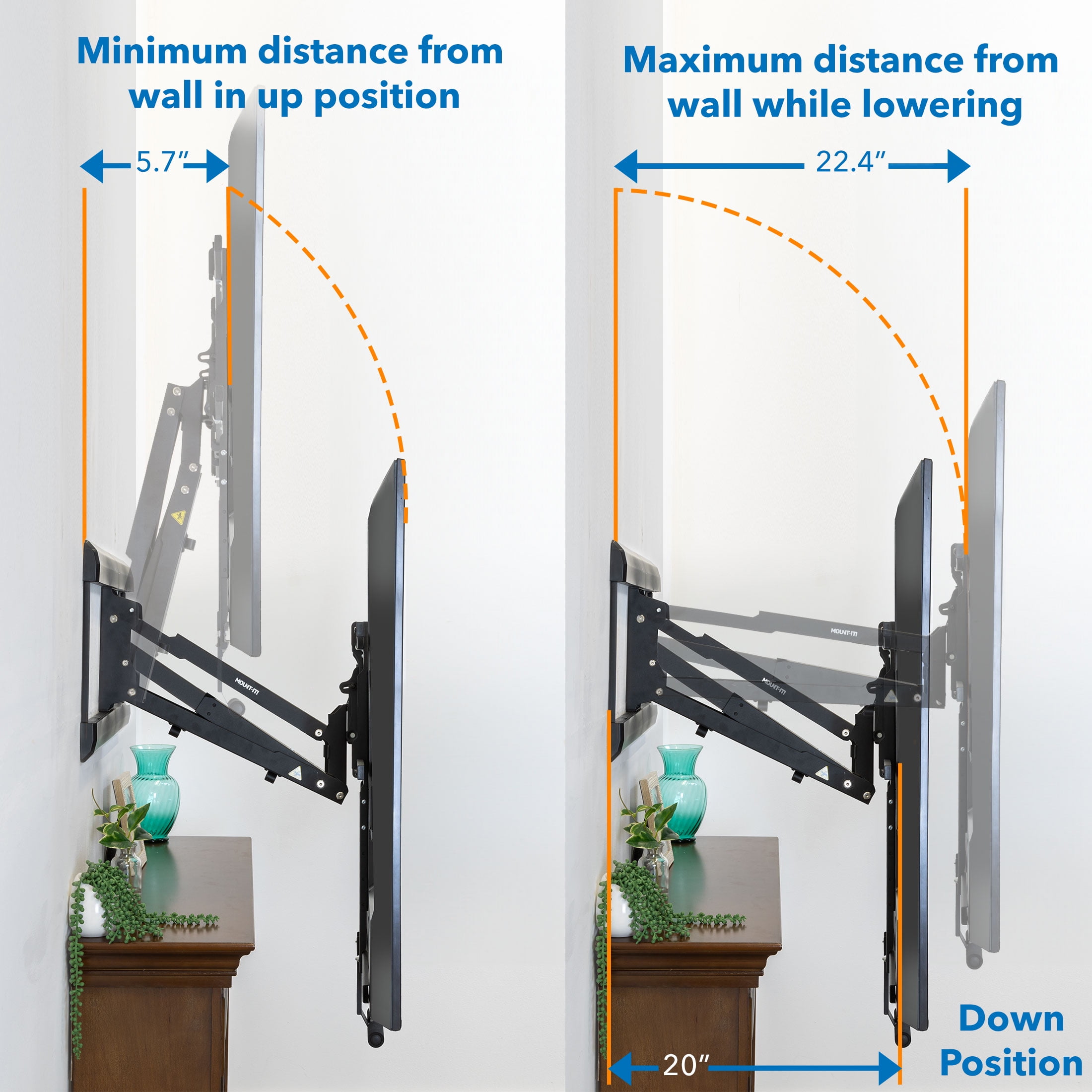 - Extension from Wall: 4.7″ min to 20.1″ max (wall to back of TV)