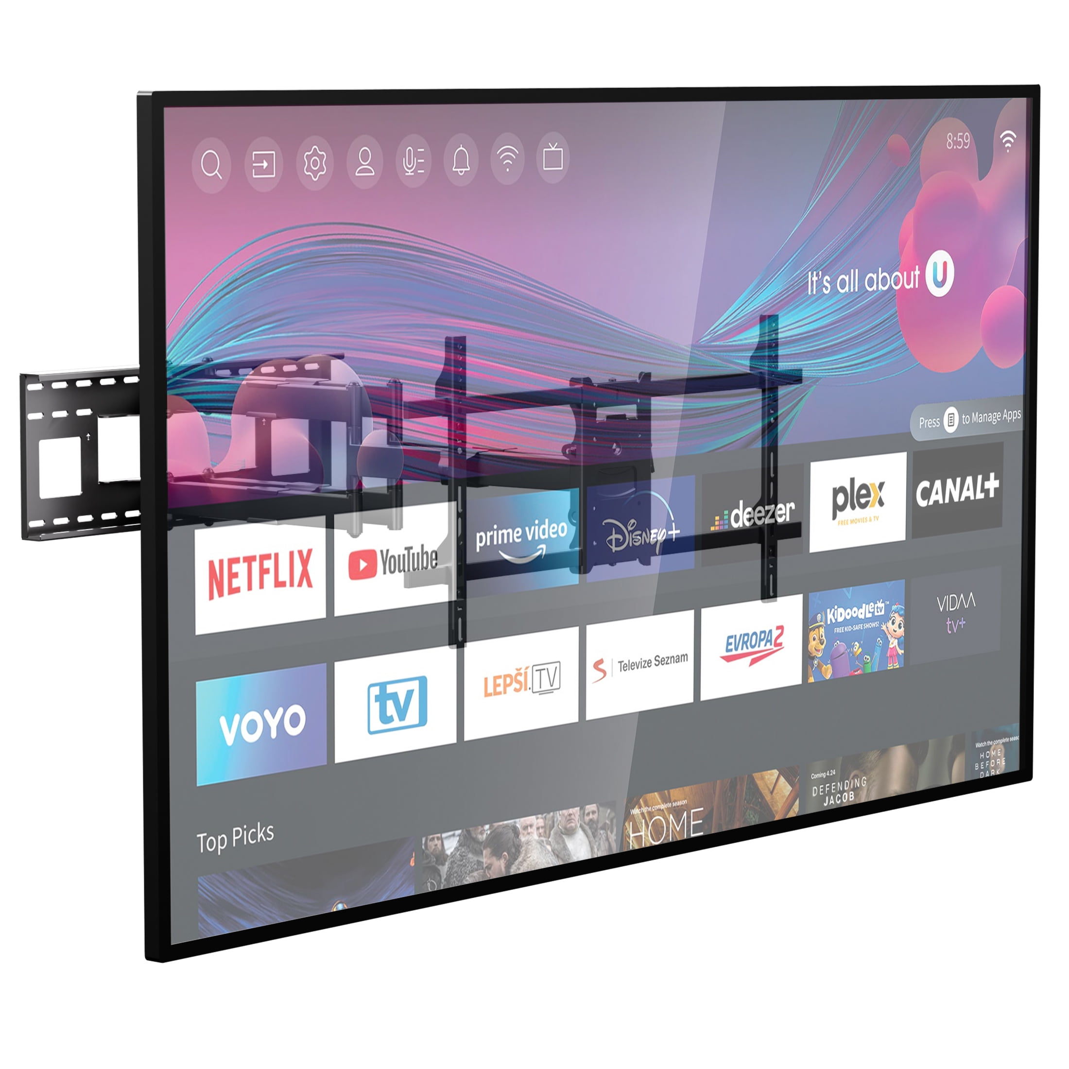 - Full-motion mount can tilt, swivel and extend for the perfect positioning