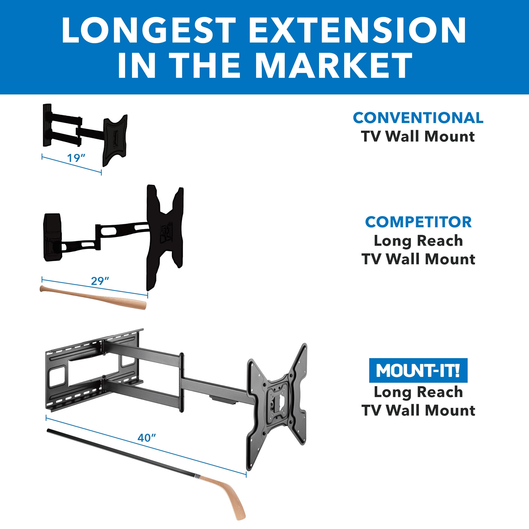 - Extra long arm extends a generous 40″ away from the wall for ultimate viewing flexibility
