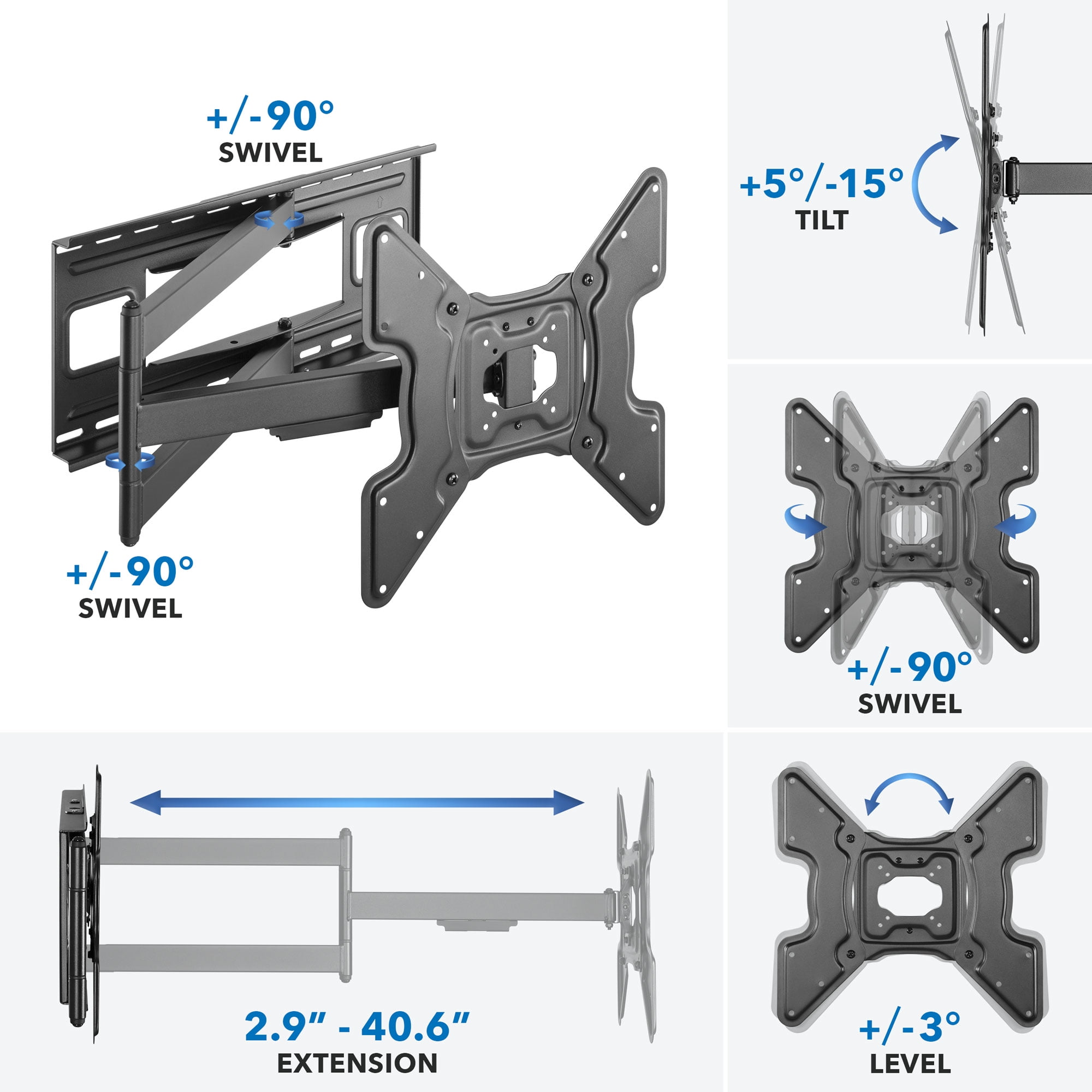 - Enjoy full motion capabilities allowing you to tilt, swivel, and extend your TV for optimal viewing angles in any room or setup