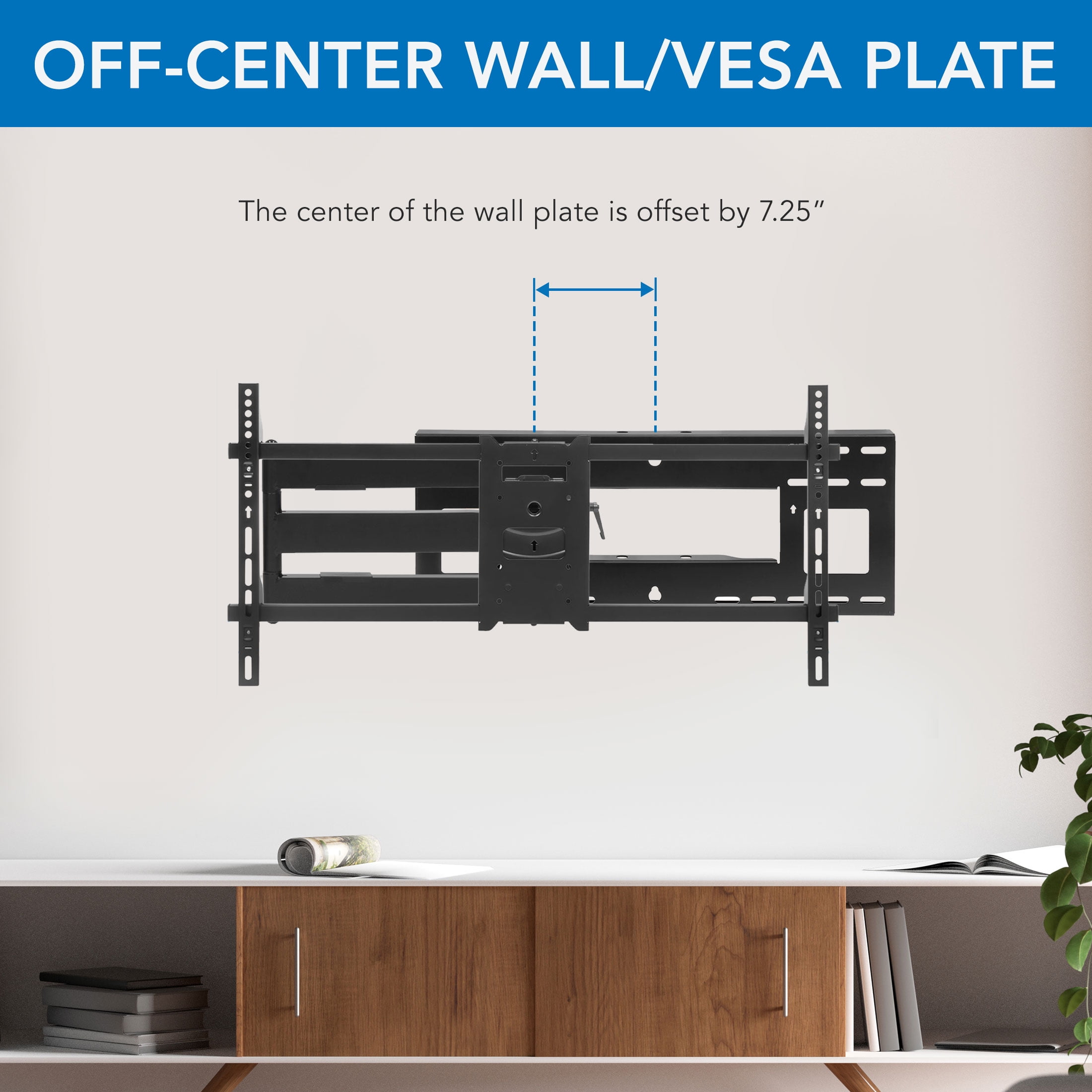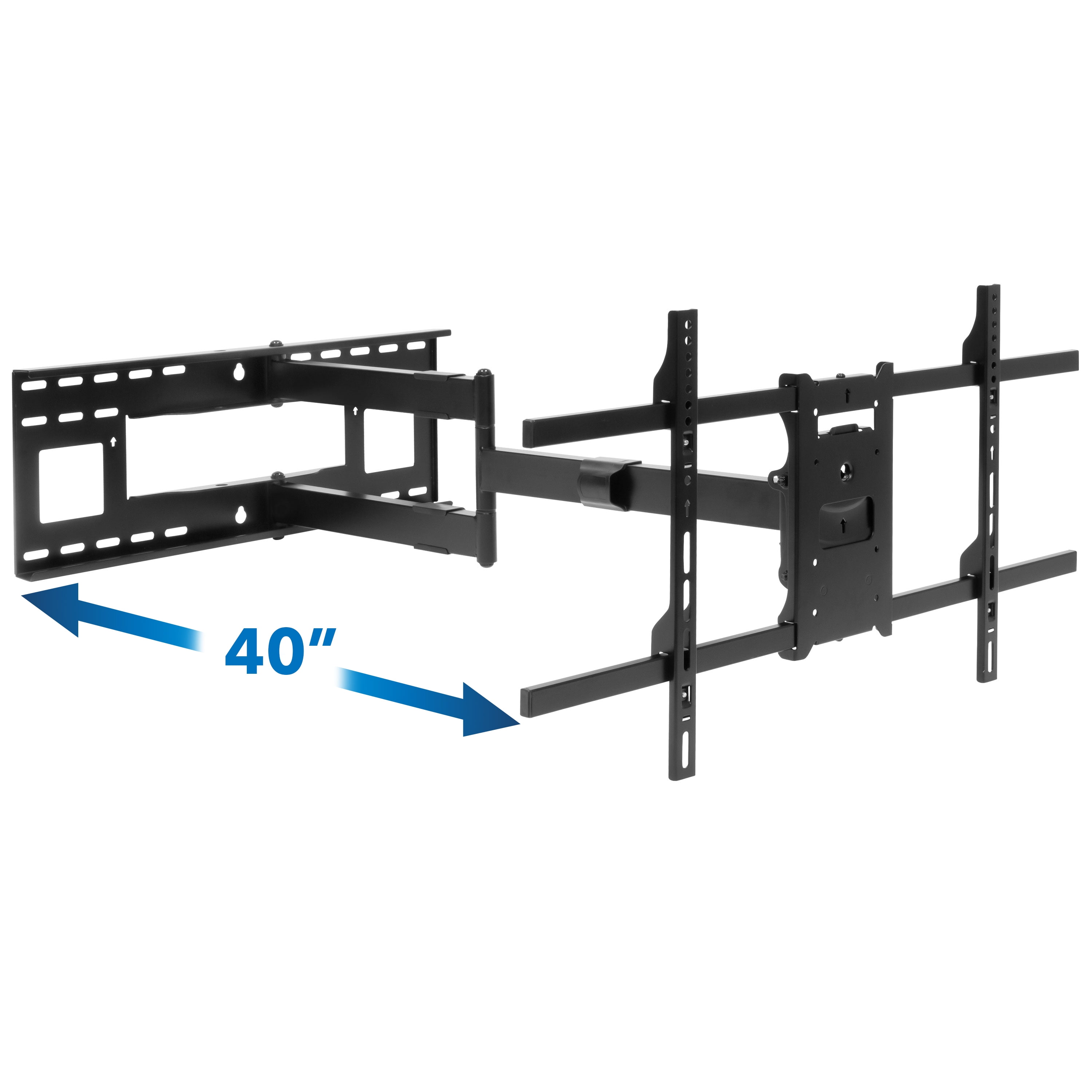 Mount-It! Full Motion Extra Long Arm TV Mount Mount-It! MI-372 full motion extra long arm TV mount extends up to 40 inches away from the wall for ultimate viewing. The dual arm construction makes it stronger for supporting TVs weighing up to 110 lbs. Place your TV in the perfect position with this mount’s full motion capability. All necessary instructions and hardware included. Features and Specifications: – 40 inches extra long arm extension – Universal full motion TV bracket – Multiple pivot points – Stable 2 joint arm support – Cable management system.
