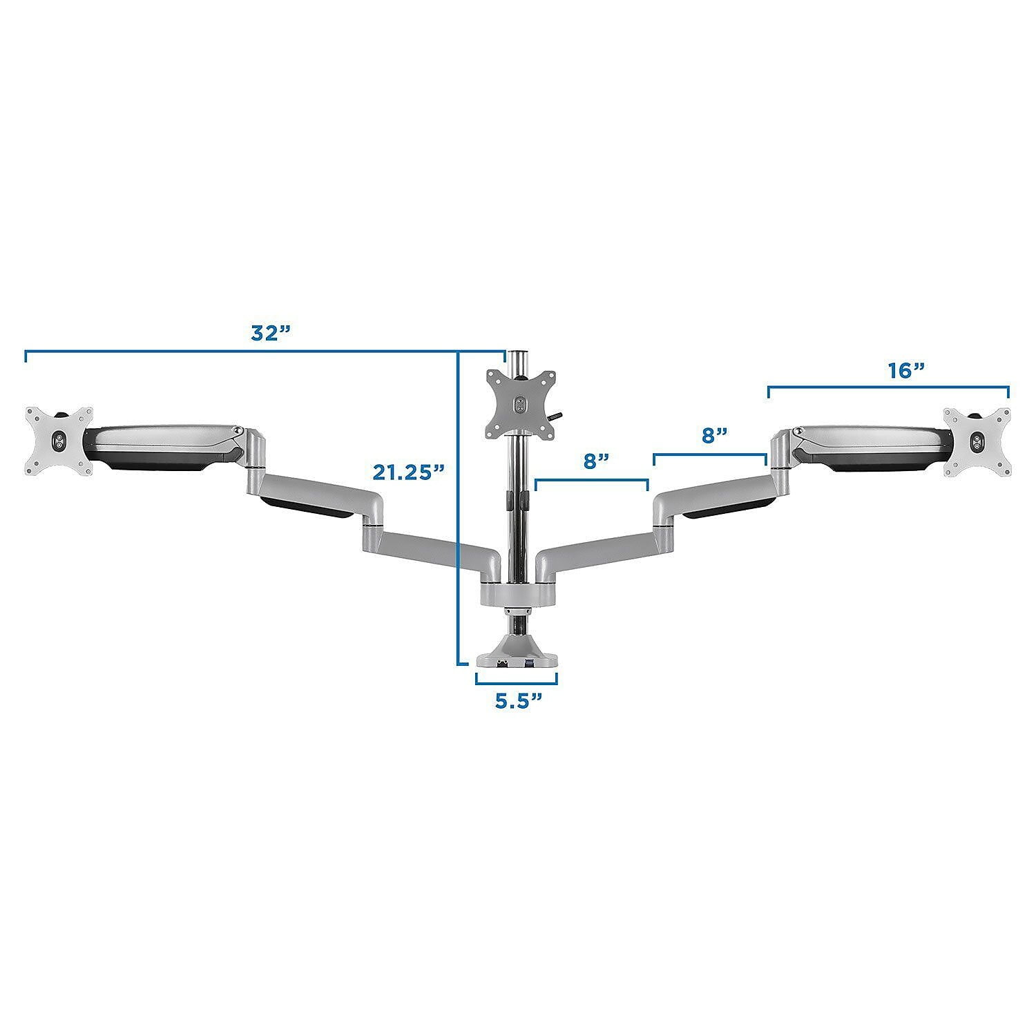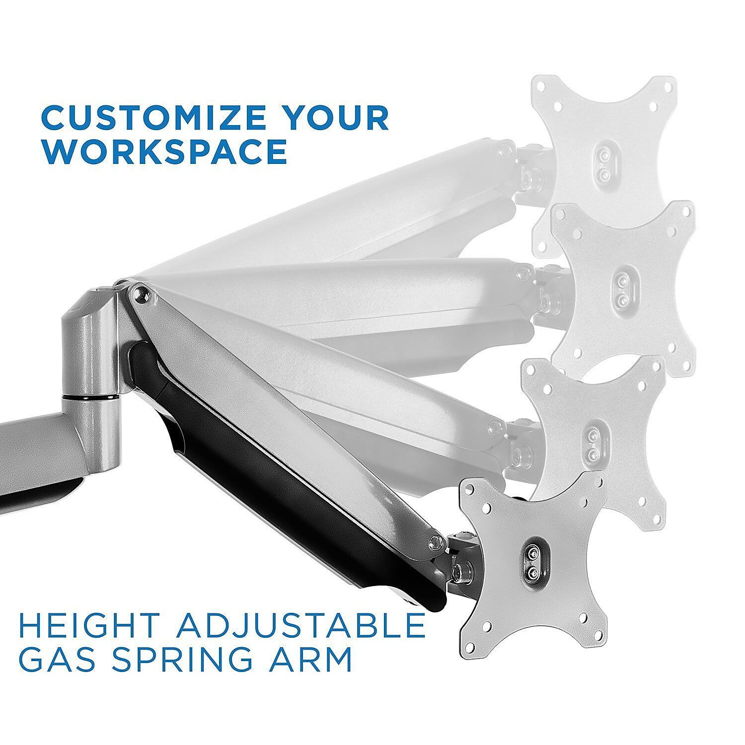 - Full motion arms, each with easy-lift gas springs and positioning in portrait or landscape mode for optimum office or gaming use