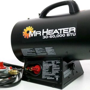 Mr. Heater forced air propane heaters provide instant heat even and feature Quiet Burner Technology, making them 50% quieter than a standard propane heater. The 60,000 BTU model heats up to 1,500 sq ft quick and effortlessly. Also features variable output from 30,000 to 60,000 BTUs, a continuous electronic ignition for quick and reliable starting. Equipped with a high temperature safety shut-off switch and thermo-electric safety valve to shut down the unit in unsafe conditions, so you ll have peace of mind to focus on the task at hand. Includes a 10 ft hose and regulator with an approximate 12 hours of run time on a 20 lb propane tank, so whether on the work site or in the garage, stay comfortably warm while getting the job done.