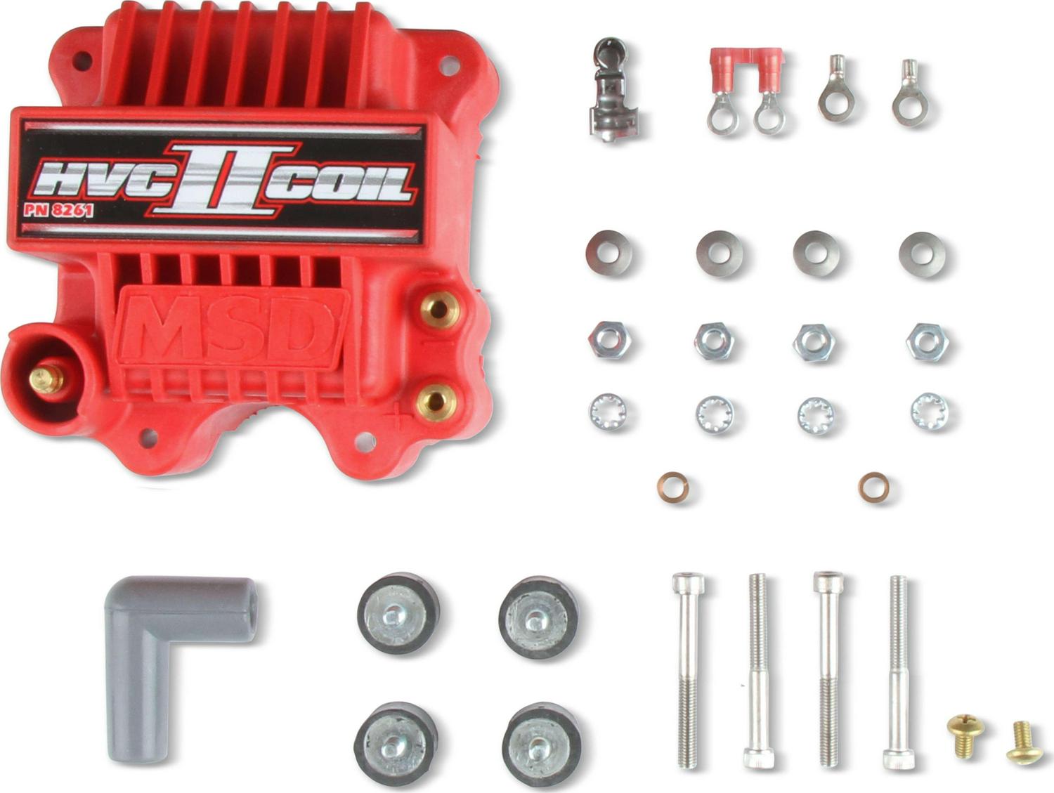 The HVC II Coil is completely built in-house so our engineers have exclusive control over their performance and quality. The Coil utilizes an iron U-Core design with a segmented bobbin for improved voltage distribution. The bobbin is molded from Dupont Rynite FR946 material which has incredible dielectric capabilities at high temperatures. MSD also incorporated a cutting edge winding material that has an improved insulation and is also capable of enduring extreme voltages. Together, these materials create a durable coil with incredible voltage capabilities, lightning quick rise time and lengthy spark duration.;