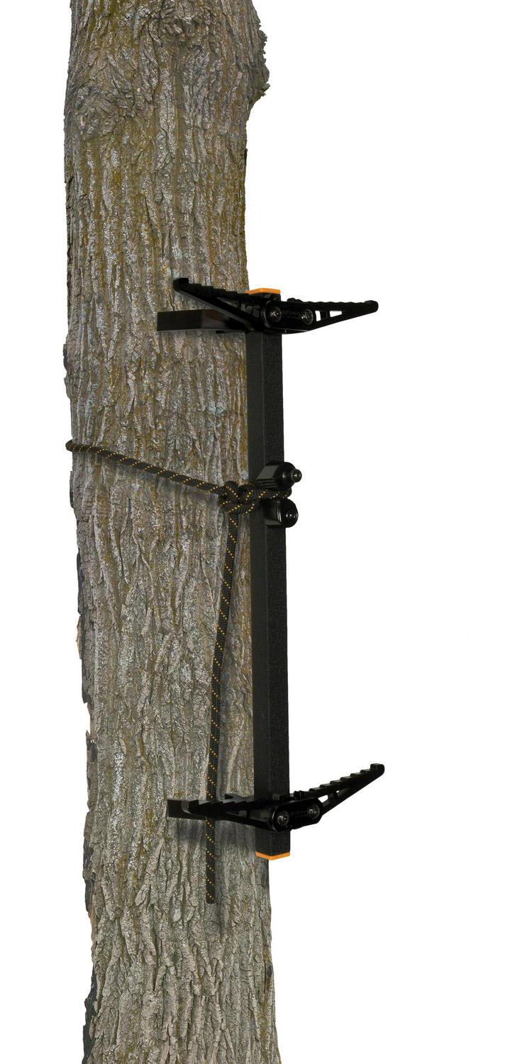 Aluminum climbing sticks featuring Rope Cam system for a quick and quiet install. Designed to pack with several compatible Muddy fixed position treestands. Each step has built-in teeth for extra grip. Works well on both crooked and straight trees. Total height is 12.5 with 18 between sections. Weighs 10 lbs. Weight rating: 300 lbs.