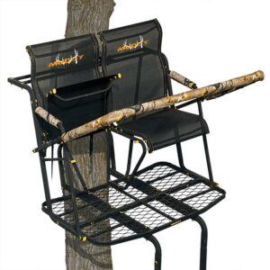 – 2-person ladder stand gives you and your buddy a place to hunt high above big game on the ground