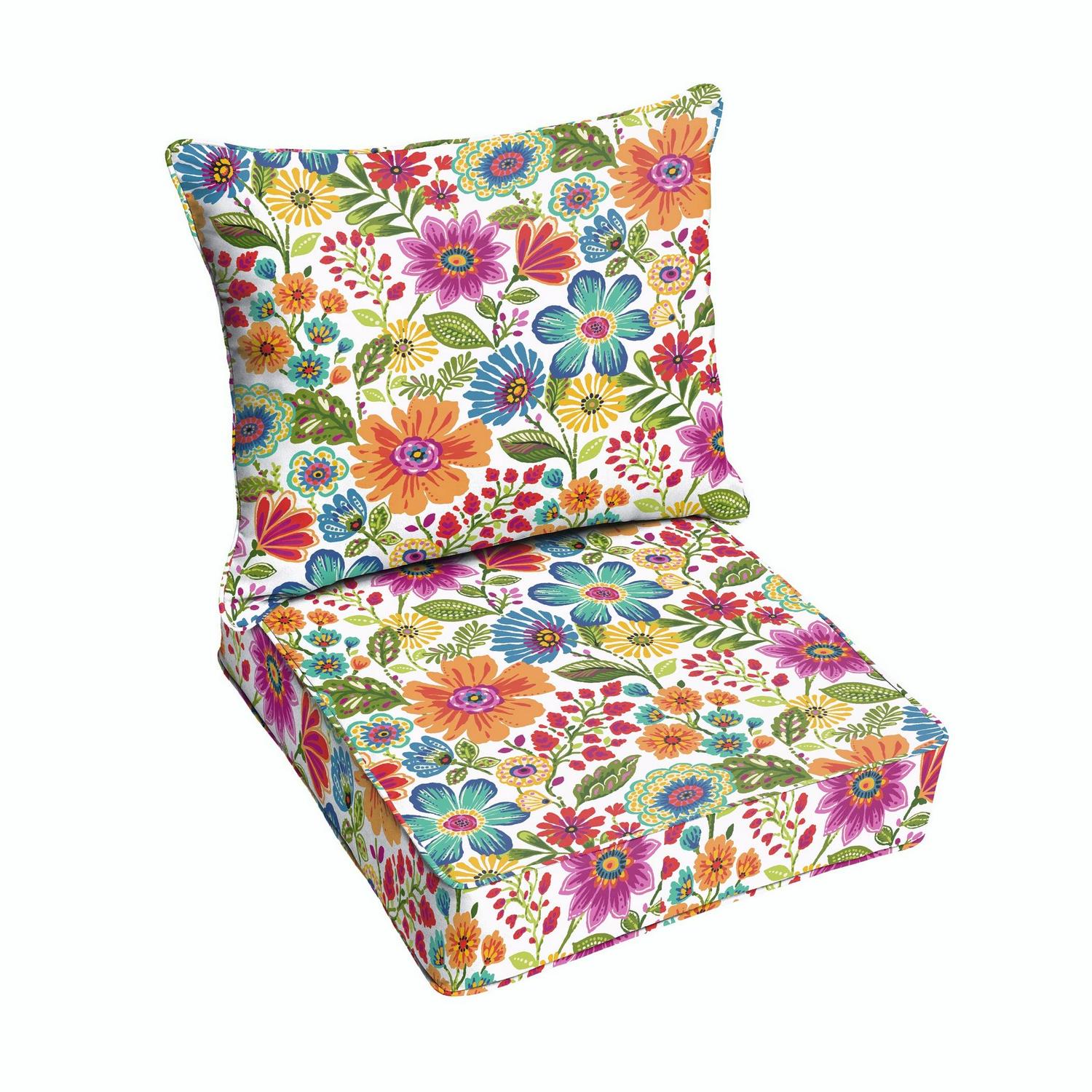 Multi Floral Indoor/Outdoor Deep Seating Pillow and Cushion Set, Corded