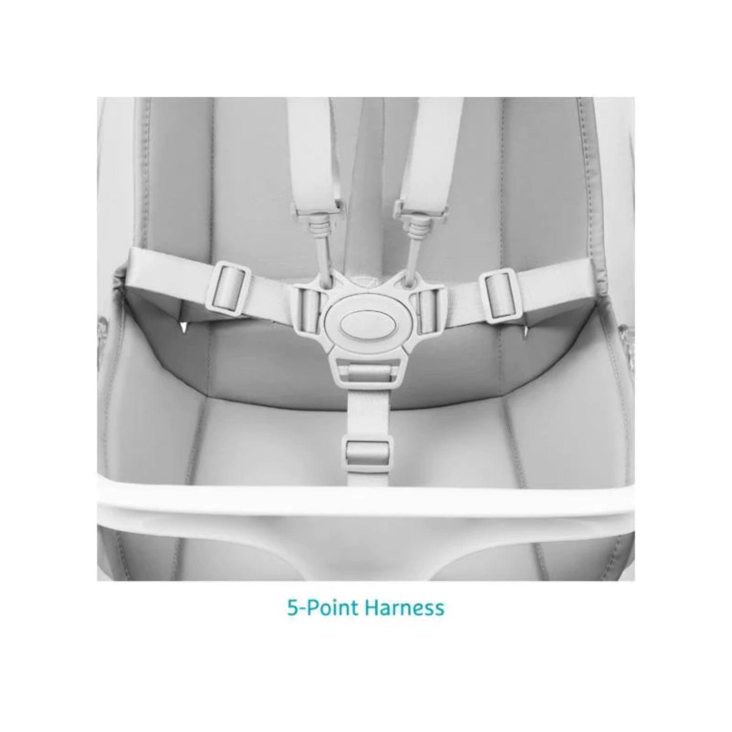 – MAXIMUM SAFETY Includes adjustable base and 5-point harness system with adjustable straps keep babies and toddlers (ages 6 months-3 years old; up to 33lbs) safe and secure in the high chair
