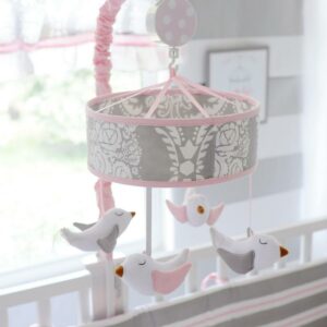 Start your little one on mastering the art of pattern mixing early with the Olivia Rose 3 Piece Crib Bedding Set by My Baby Sam. This sweet baby bedding set includes a tailored crib skirt in a gray-and-white damask print with striped pink-gray-and-white bows; a fitted crib sheet in white with pink and gray polka dots; and a cozy blanket in a coordinating gray-and-white damask print with pink cording and a polka dot ruffle. Each cotton and polyester fabric piece is conveniently machine washable. Dimensions: Pleated Crib Skirt drop length is 15″. Crib sheet: 51L x 27.5W x 8H in. Blanket: 36L x 44W in. My Baby Sam was dreamed up by mom-of-three Tori Swaim in 2001. My Baby Sam provides a fun and diverse selection of baby bedding and kids room decor at an affordable price