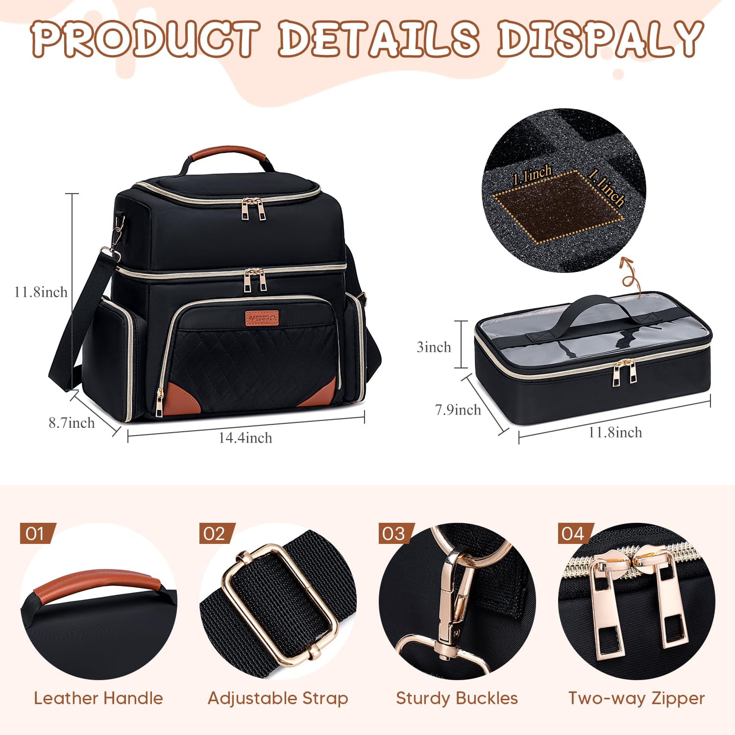 Spacious & Versatile Storage: This nail polish organizer measures 14.4”L x 8.7”W x 11.8”H and includes a removable case (11.8”L x 7.9”W x 3.0”H) with ample space to store all your nail essentials like UV LED nail lamps, nail drills, brushes, and more. Double-Layered Design for Maximum Capacity: The top layer features a removable divider to fit LED nail lamps up to 13” x 9.5” x 5.5”. The lower layer has a large compartment, side pockets, and a front pocket for organized storage of manicure tools. Removable Nail Polish Cases: The organizer includes 2 removable cases with 70 slots, perfect for storing 15ml/0.5 fl.oz nail polish bottles. It can also be used as a makeup bag or travel bag. Durable & Protective Materials: Made from high-strength polyester, this organizer is durable and easy to clean. The inner layer is soft and thick, protecting your nail products from damage. 3 Carrying Options: Features an adjustable shoulder strap, leather handle, and luggage strap for convenient travel. Ideal gift for friends, family, and loved ones on special occasions.