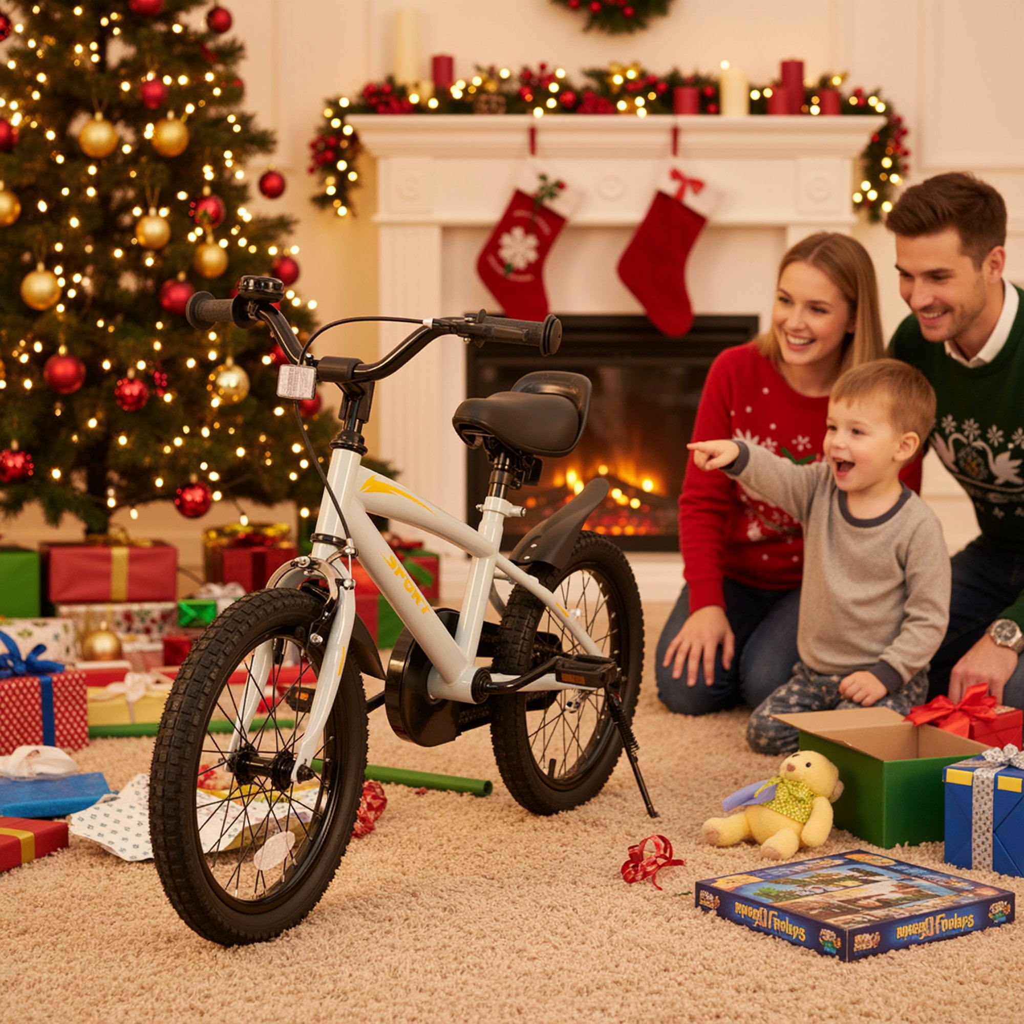 Size Information: – Bike Wheel Size: 14” – Age Group Recommendation: 3-6 years – Recommended Rider Height: 37”-42” – Adjustable Seat (seat to ground distance): 19”-25” Color: Gray Accessory Description: 2 mudguards, 2 reflectors, 1 bell, 1 pump, 2 training wheels Bicycle Type :Training Wheels Bike,Boy Bike, Girls Bike Bicycle Frame Size:14″ Bicycle Type:Kid Bike Handlebar Type:A Short Distance Handbrake Bicycle Wheel Size:14″ Number Of Speeds:0