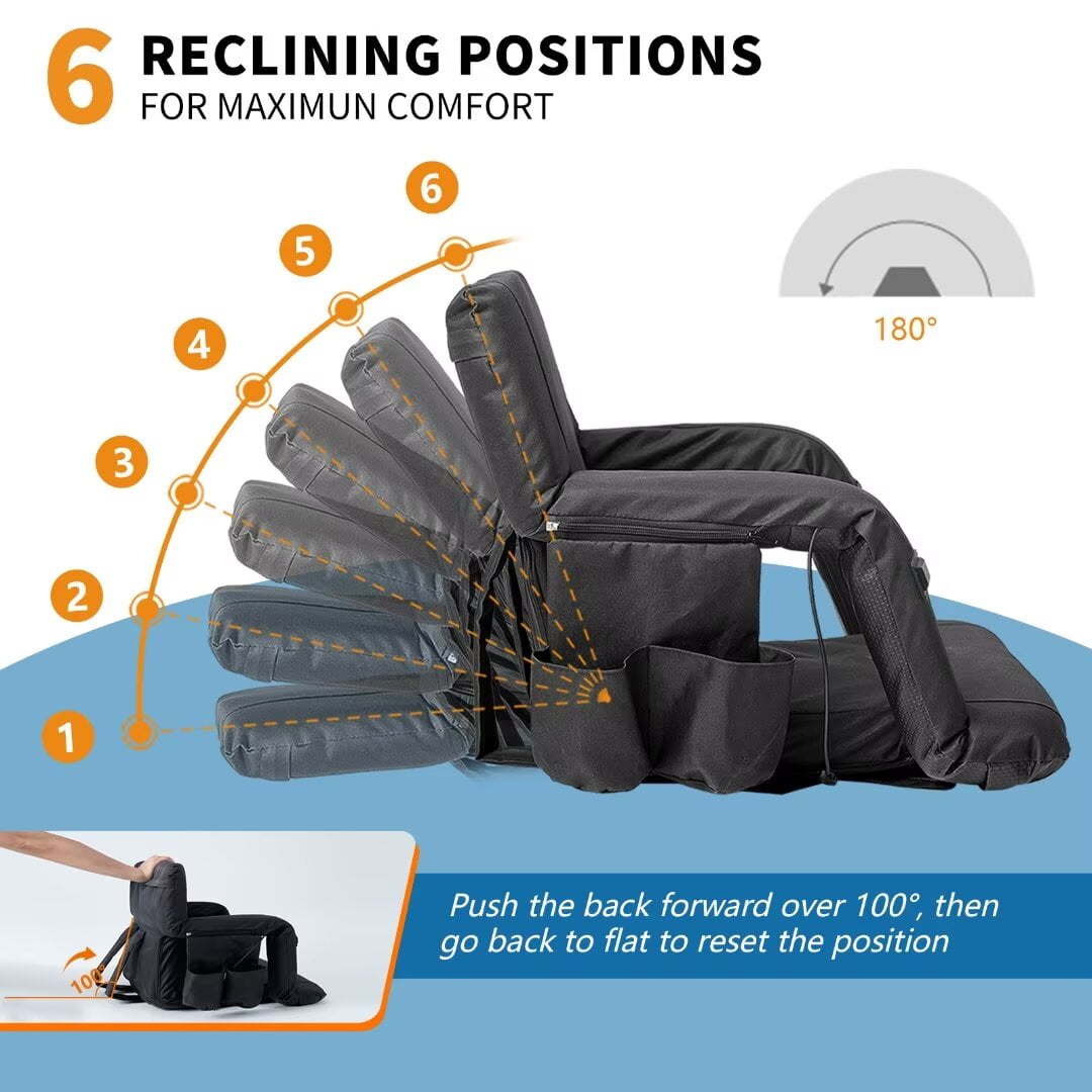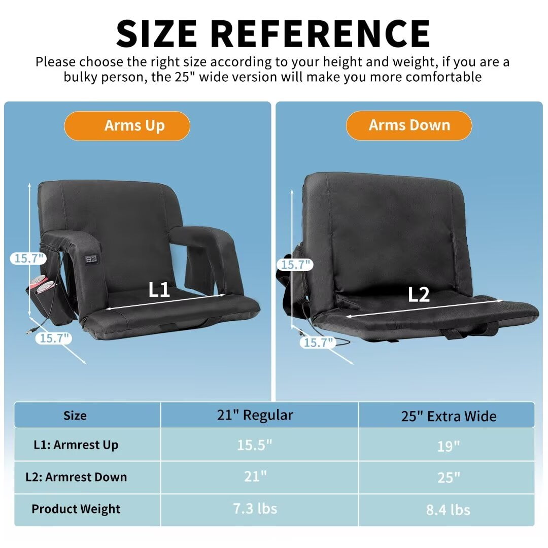 NAIZEA Double Heated Stadium Seat with Back & Arm Support, Portable 6 Reclining Positions Bleacher Chair