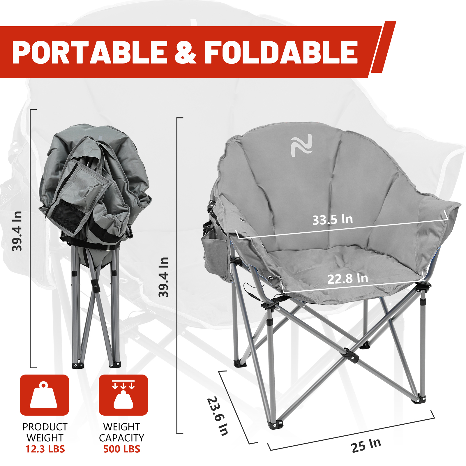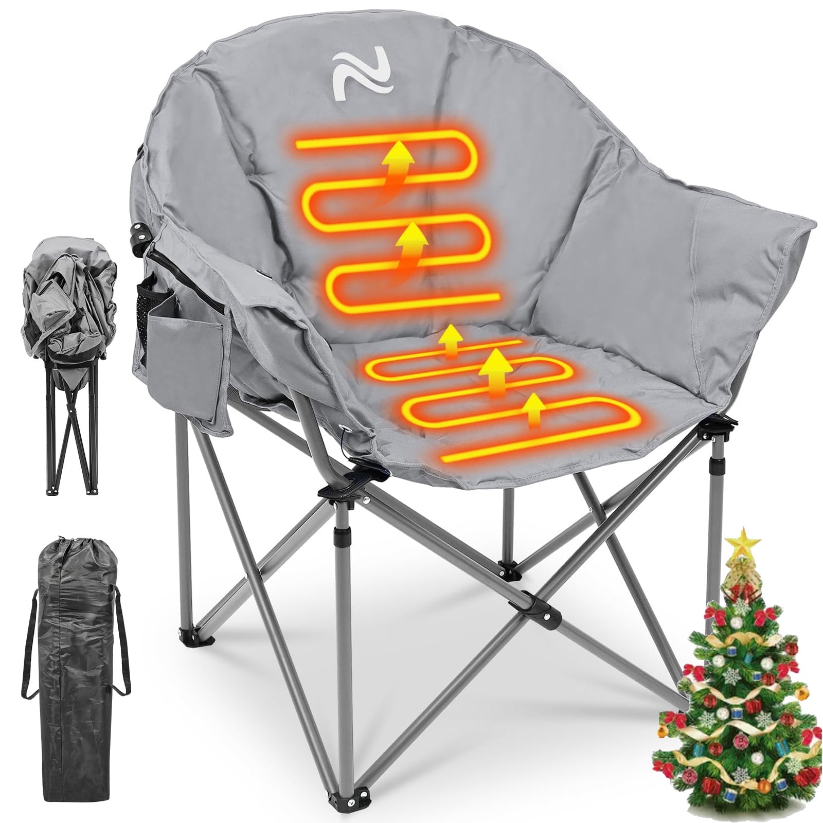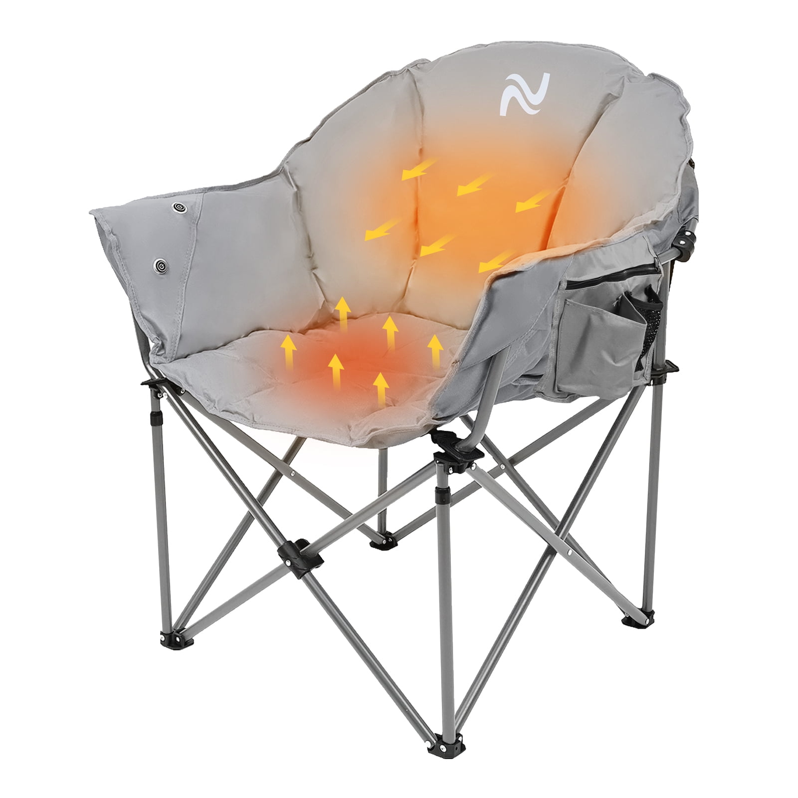 NAIZEA Oversized Heated Camping Chair, Patio Lounge Chairs with 3 Heat Levels, Portable Folding Heated Chair Round Moon Saucer Folding Lawn Chair Outdoor Chair for Camping, Lounge Patio