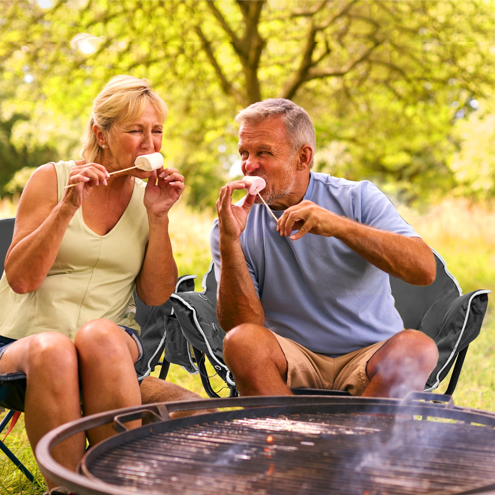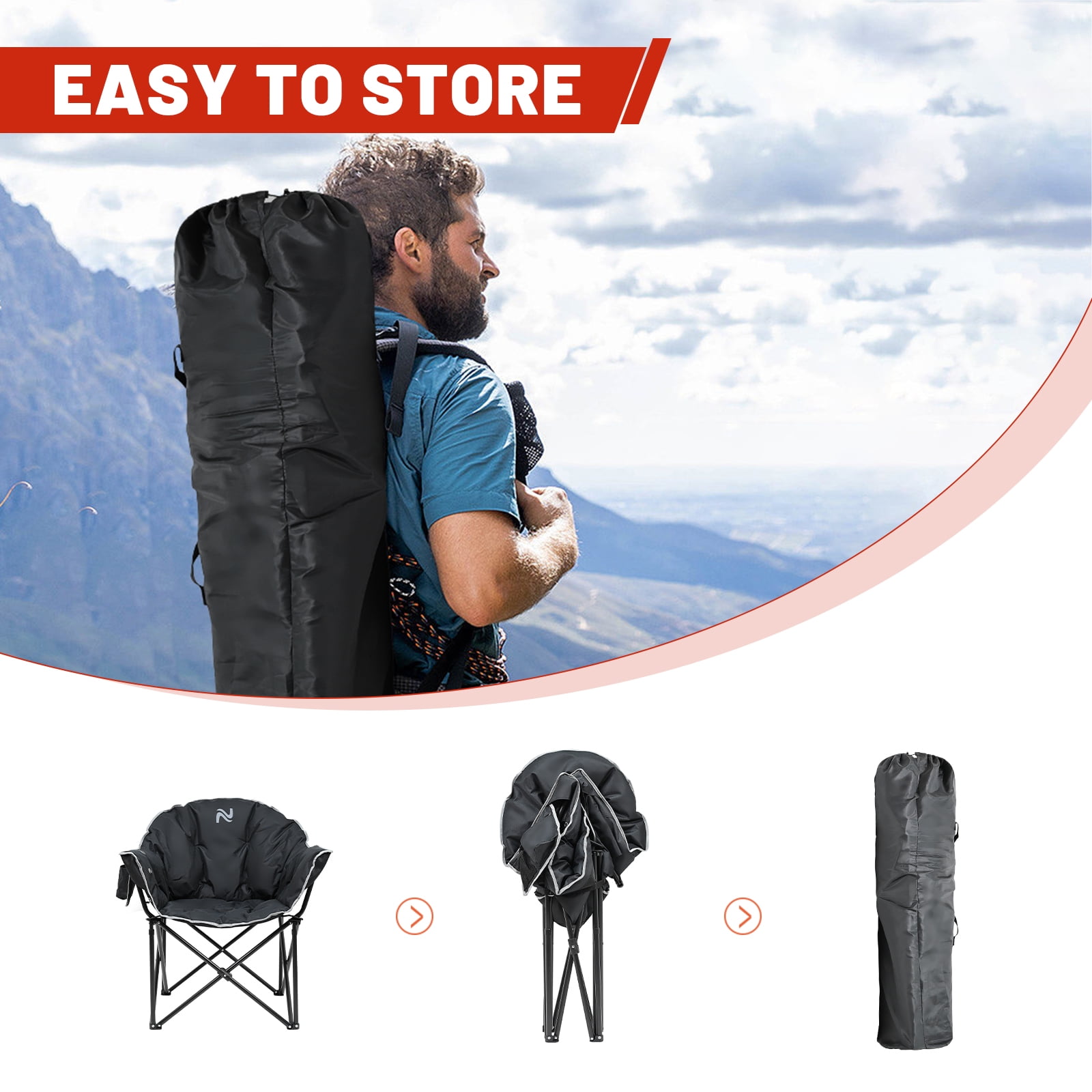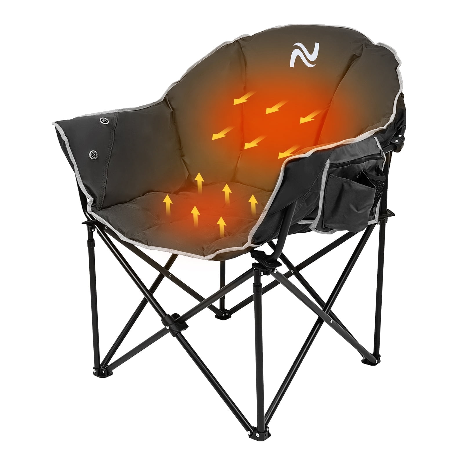 NAIZEA Extra Wide Heated Portable Camping Chair, 3 Heat Levels, Folding Moon Saucer Lawn Chair for Outdoor