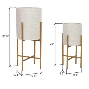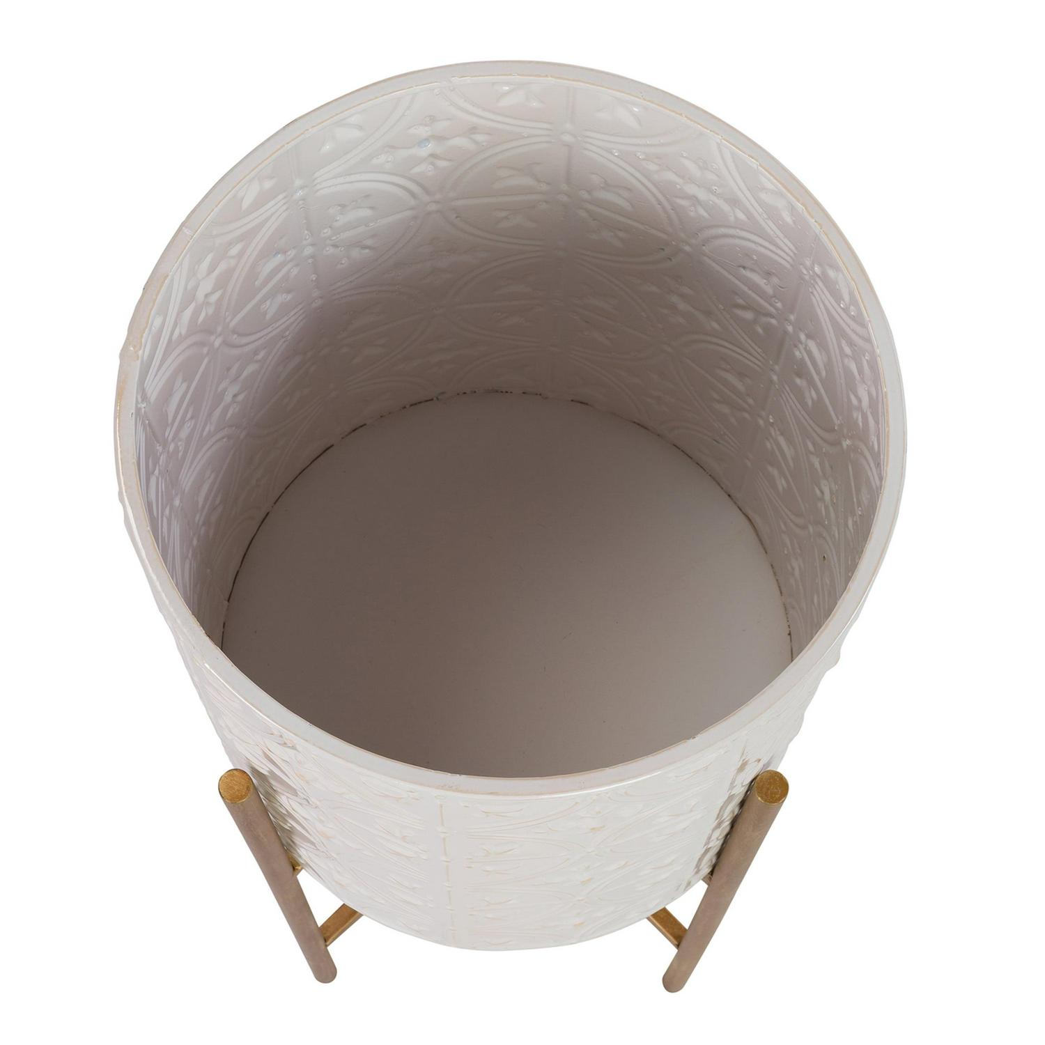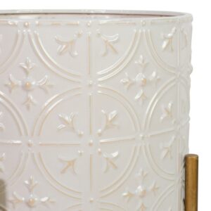 An attractive choice for your bedroom or living room, these metal planters have an off-white finish that blends with a variety of design styles. The raised embossed design features light gold accents for definition and style, while the raised antique gold legs give it an aged but timeless look. Use them to accentuate a Bohemian or glam space with a splash of elegance.