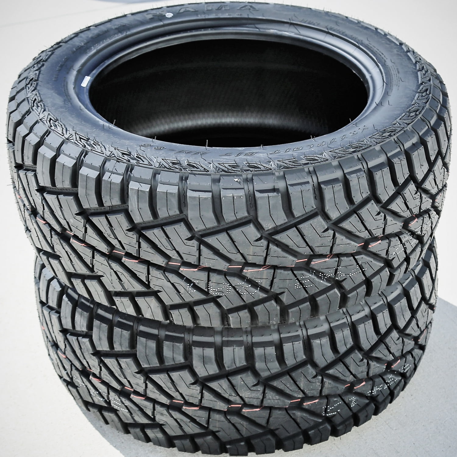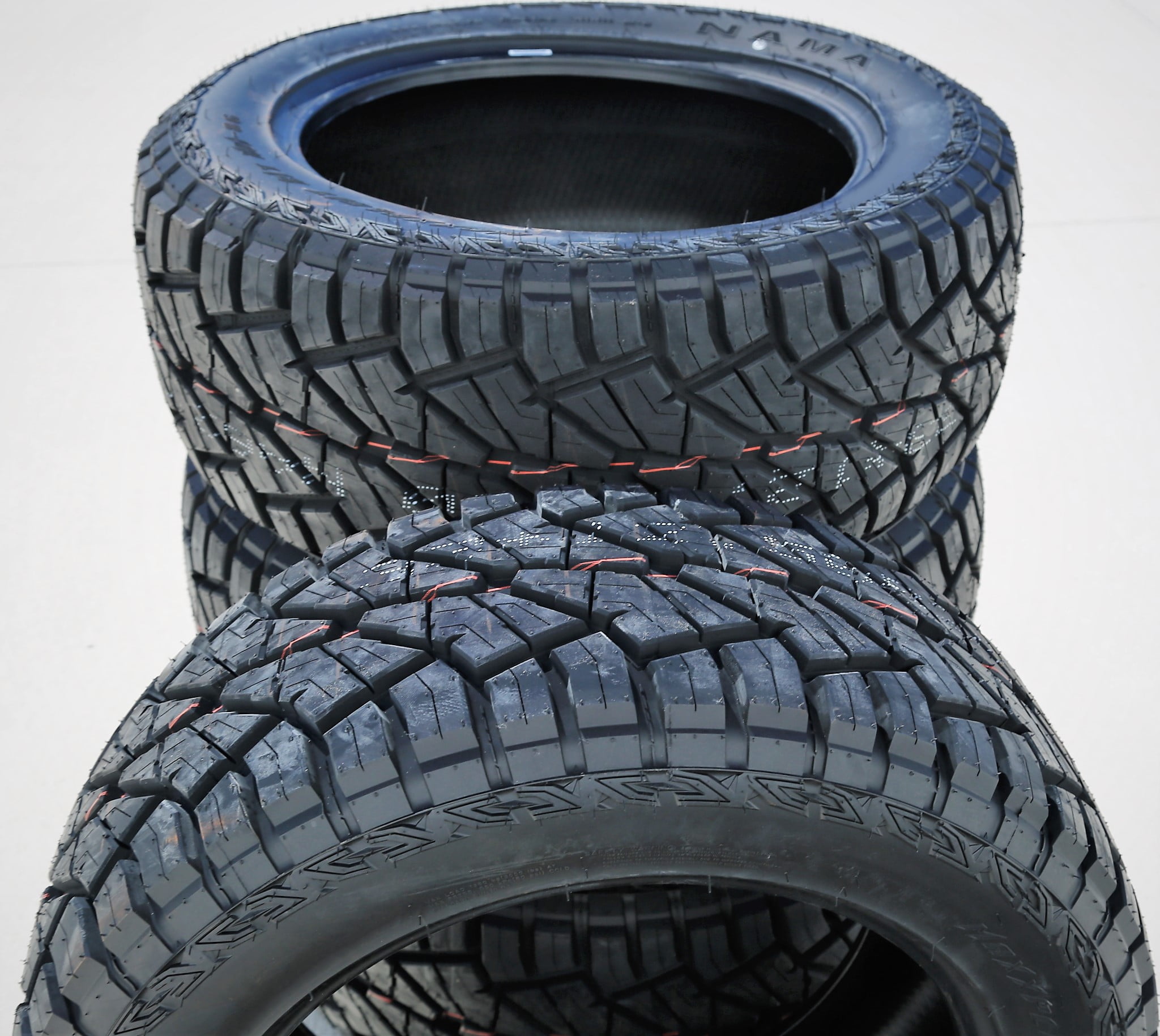 Nama Maxxploit R/T NM-86 OVERVIEW The Nama Maxxploit R/T NM-86 is a rugged terrain, all season tire manufactured for light trucks and SUVs. This model is specially designed for harsh terrain surfaces. With its irregular-shaped and siped tread blocks, it forms an aggressive footprint. It also utilizes earth digger shoulders that provide extra biting edges for cornering. The tread elements are arranged to improve driving comfort on the road, while ensuring a strong grip in loose, soft, and uneven terrain conditions. With the siped tread blocks, the tread is densely populated with biting edges. Due to the optimized void ratio, the model eliminates dirt, mud, snow, slush, and rocks from the footprint with high efficiency. The tread design maximizes the tire’s surface contact with the evenly distributed tread blocks. This significantly improves its driving stability and steering responsiveness throughout the drive. As a result, the driver is able to seamlessly maneuver the vehicle while relying on fast and precise responses. The tire also has the structural stability to endure driving pressure affecting it. The constant surface contact enables the detailed center- and shoulder blocks to shorten the tire’s braking distance. The tire features a tough, wear-resistant compound that greatly extends its service life. It also comes with a completely flat footprint that evenly distributes load and driving pressure across the tread. This way, all tread elements wear evenly and irregular wear formations are also prevented. The tough rubber blend and the tread block arrangement prevent tread flexing. With the even pressure distribution, there is no pressure build-up. The Nama Maxxploit R/T NM-86 evenly circulates the forces of acceleration, braking, and cornering across the tread to minimize the chance of deformations. Not all tire sizes are suitable for all vehicle types. Please refer to the item specifications for accurate information about vehicle type fitment for this particular size. Manufacturers recommend changing tires every 10 years. As long as tires are properly stored before they are sold, the year of their manufacture will not shorten their service life.