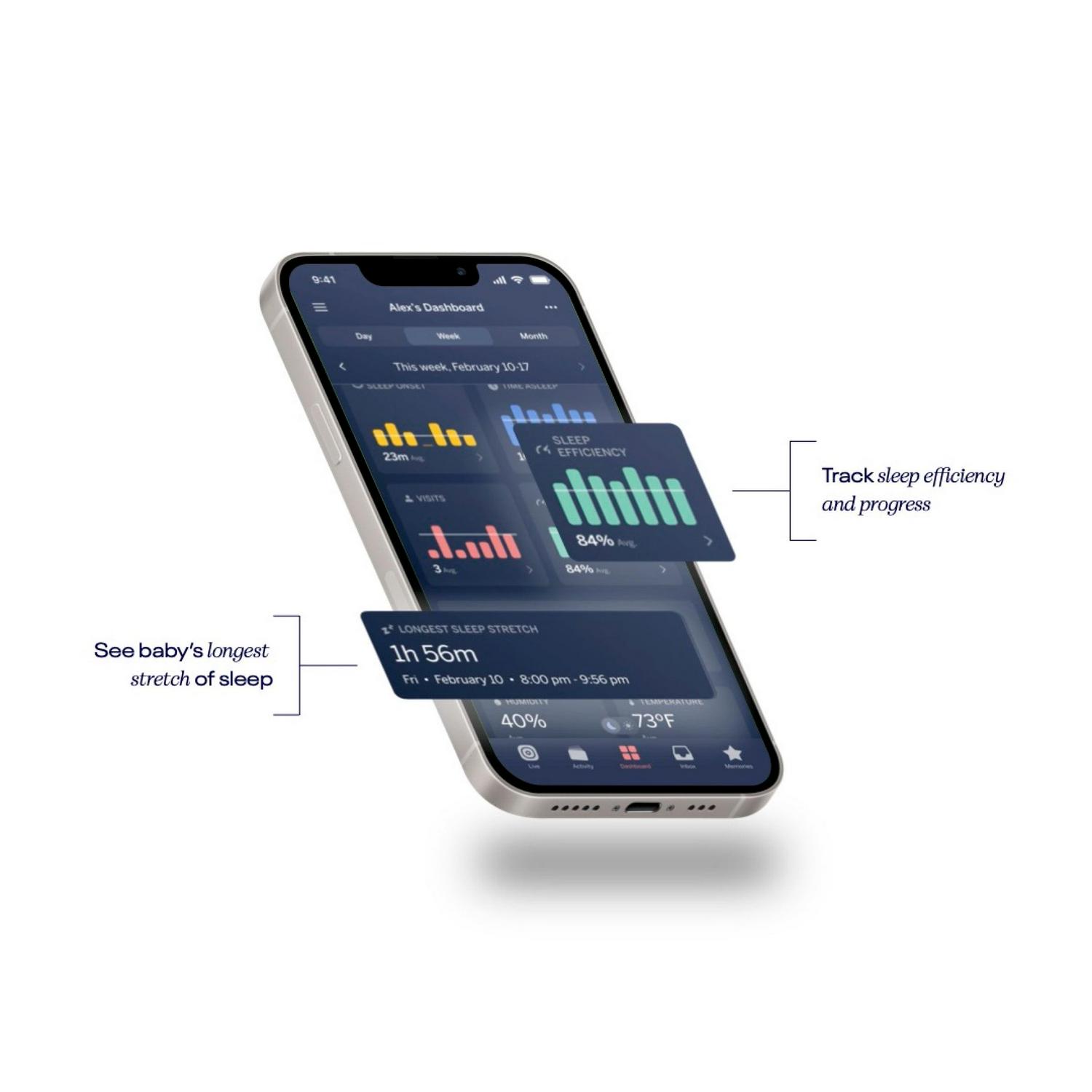 – Nanit tracks your baby s sleep patterns, and analyzes them to offer expert tips to improve sleep quality. Daily video recaps and activity feed automatically captured for easy access