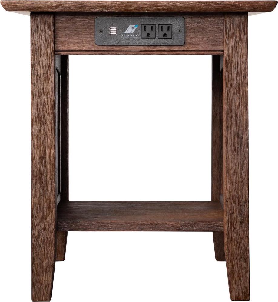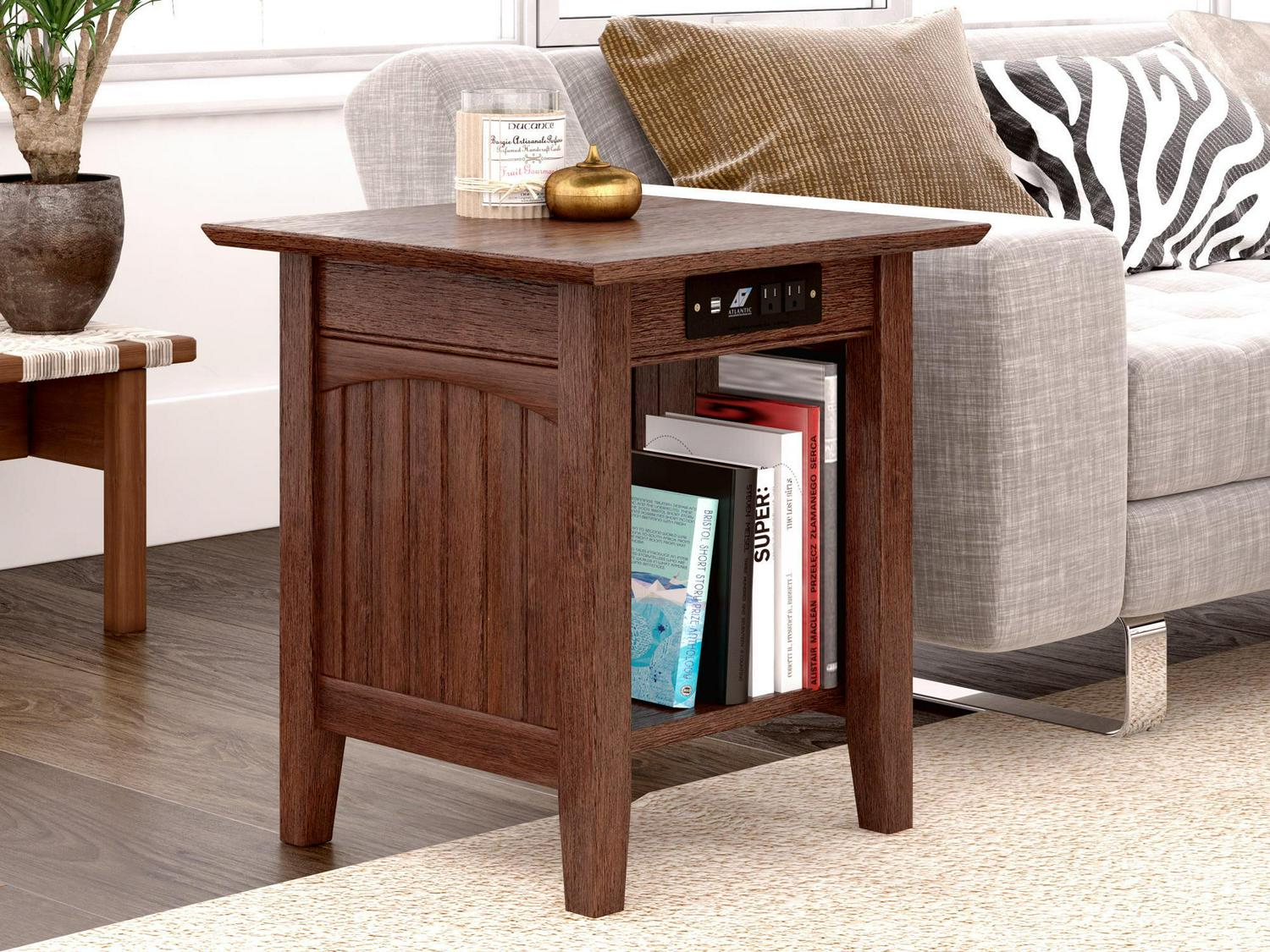 Nantucket End Table with Charging Station in Burnt Amber
