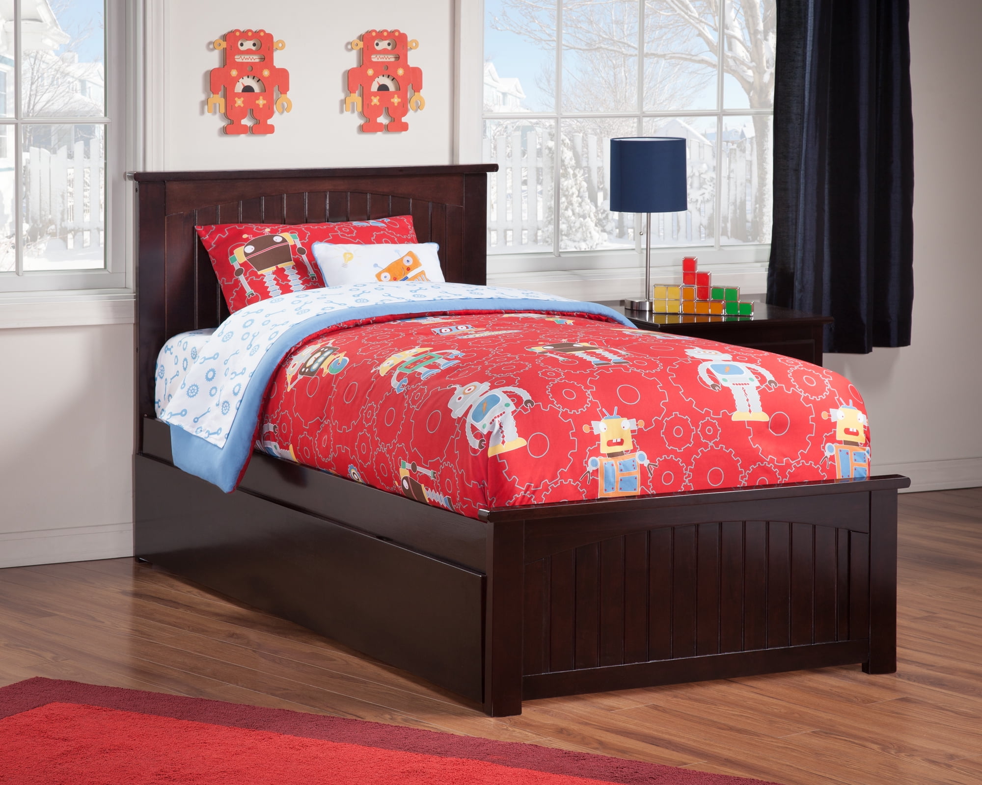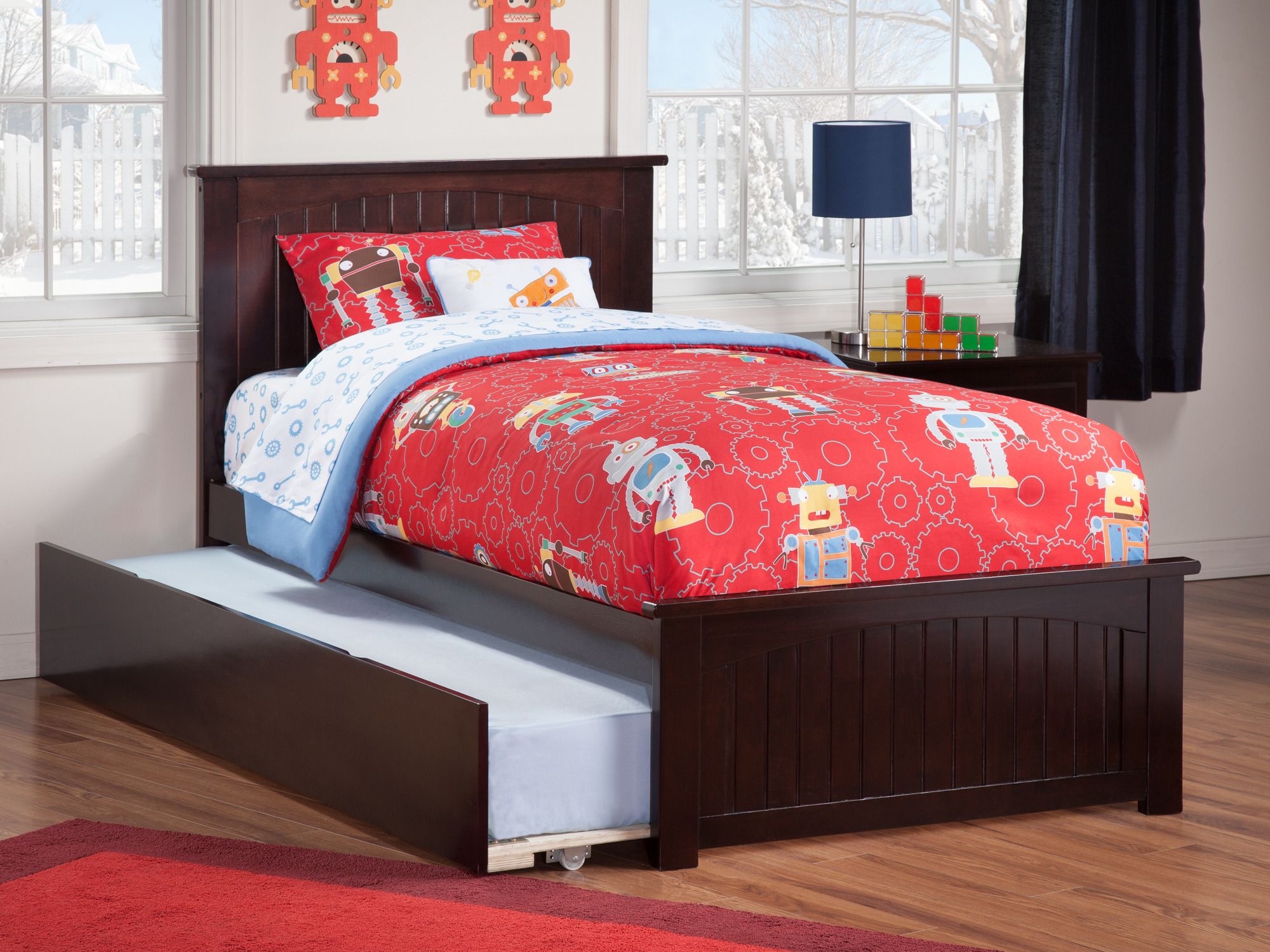 AFI Nantucket Twin Wood Platform Bed with Matching Footboard and Twin Trundle, Espresso