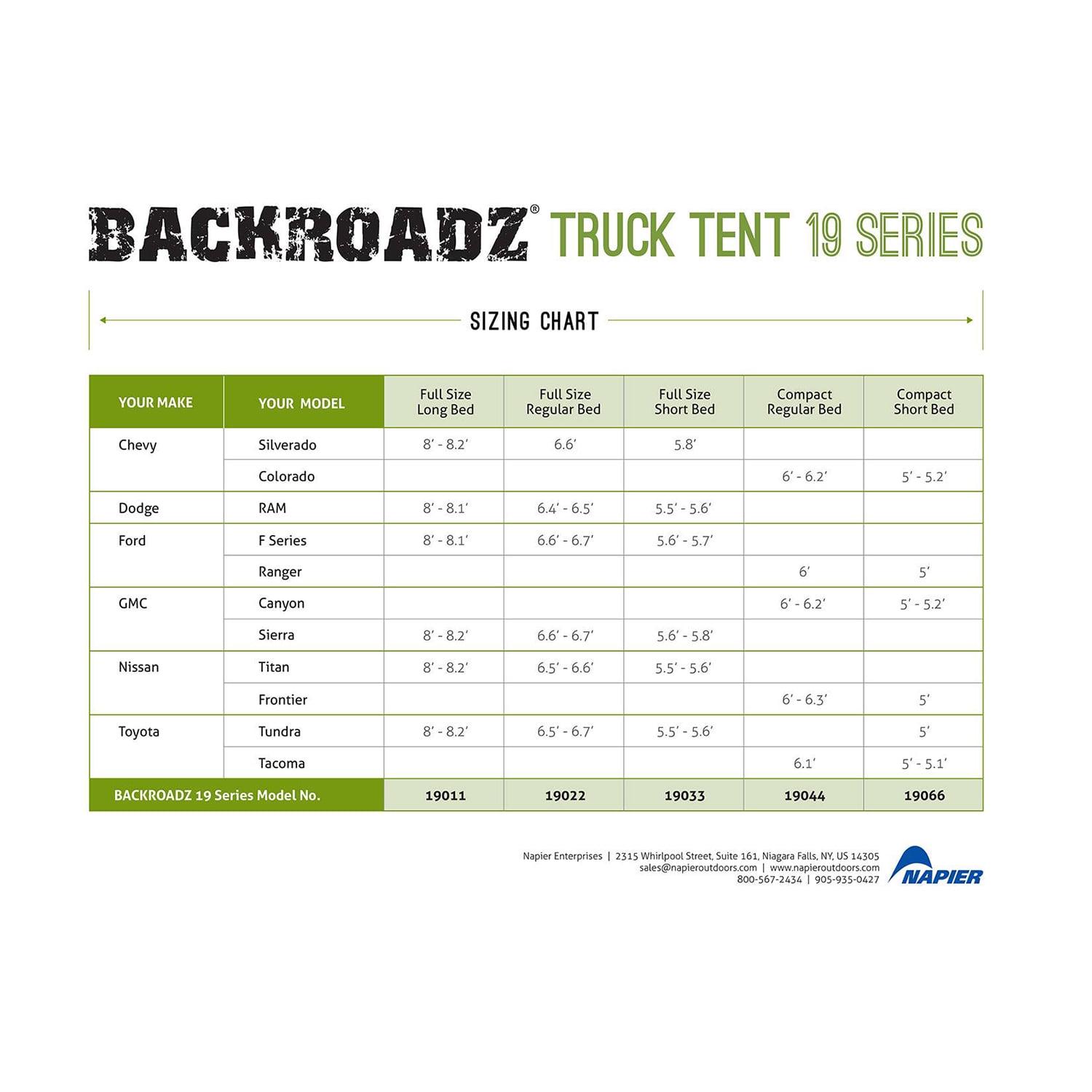 Napier 19 Series Backroadz Full Size Long Bed 2 Person Truck Tent, Gray/Green