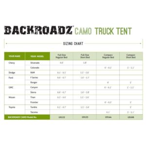If adventures in the great outdoors is what you seek, this 2-Person Truck Bed Camping Tent by Napier is perfect for you. Made with your convenience and comfort in mind, this outdoor portable shelter is spacious, private, and easy to set up. Compatible with specific vehicle makes and models, this Napier Backroadz Tent fits select Chevy, Dodge, Ford, GMC, Nissan, and Toyota trucks with full-size or short beds that measure 5.5 to 5.8 feet long. Easy to set-up, simply use the color-coded poles and sleeve assembly to get this portable tent up and ready for you. Featuring a maximum center height of 62 inches, this large camping tent offers ample interior space for up to 2 people to comfortably sit, lay, and relax. The full rainfly and storm flaps keep you safe from all the outdoor elements, as well as any passersby. The large entrance door and 2 mesh windows provides optimal ventilation and airflow throughout the tent so you can sleep soundly all night. Whether you’re exploring rugged mountaintops or flat prairieland, the Napier Backroadz Full-Size Short Truck Bed Camping Tent has you covered.