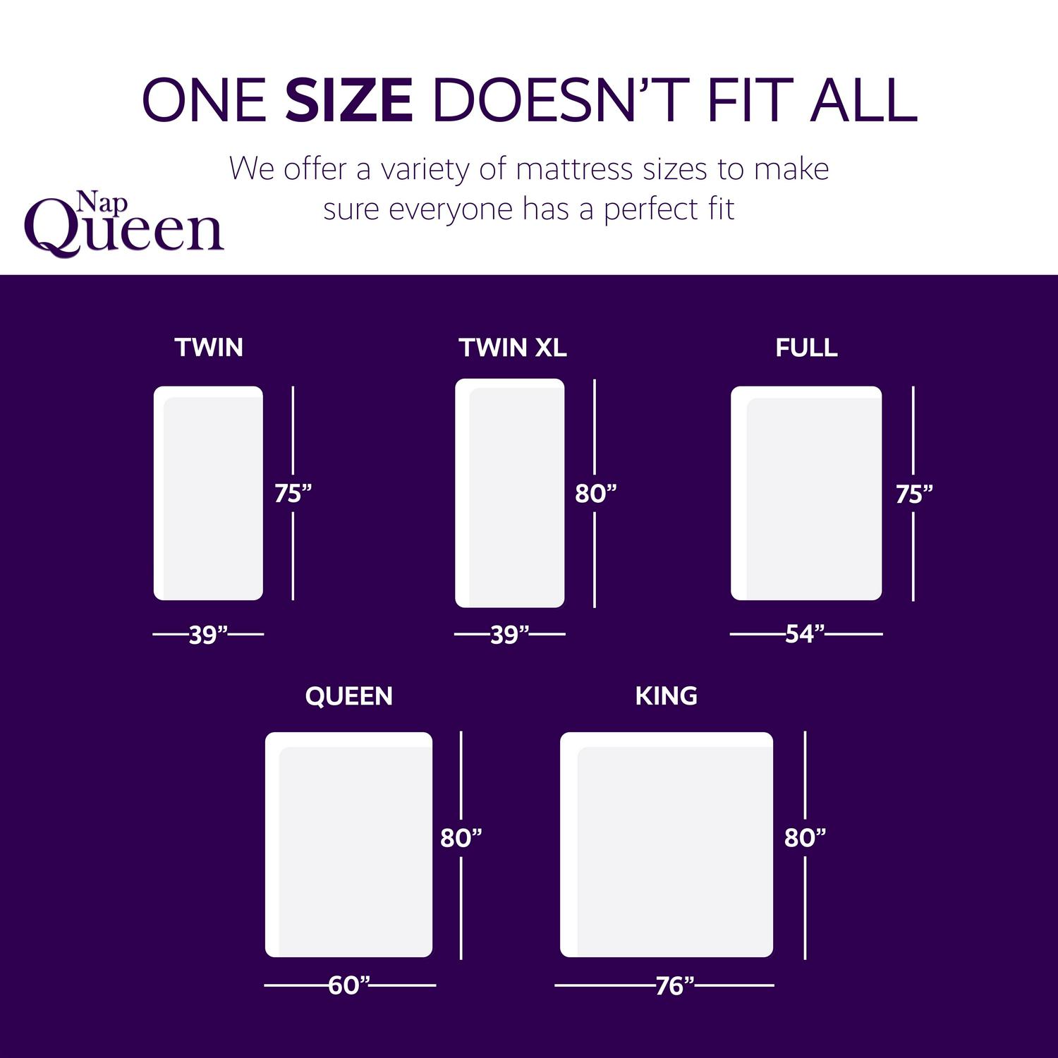 Available in 5 sizes: Twin, Twin XL, Full, Queen, King;