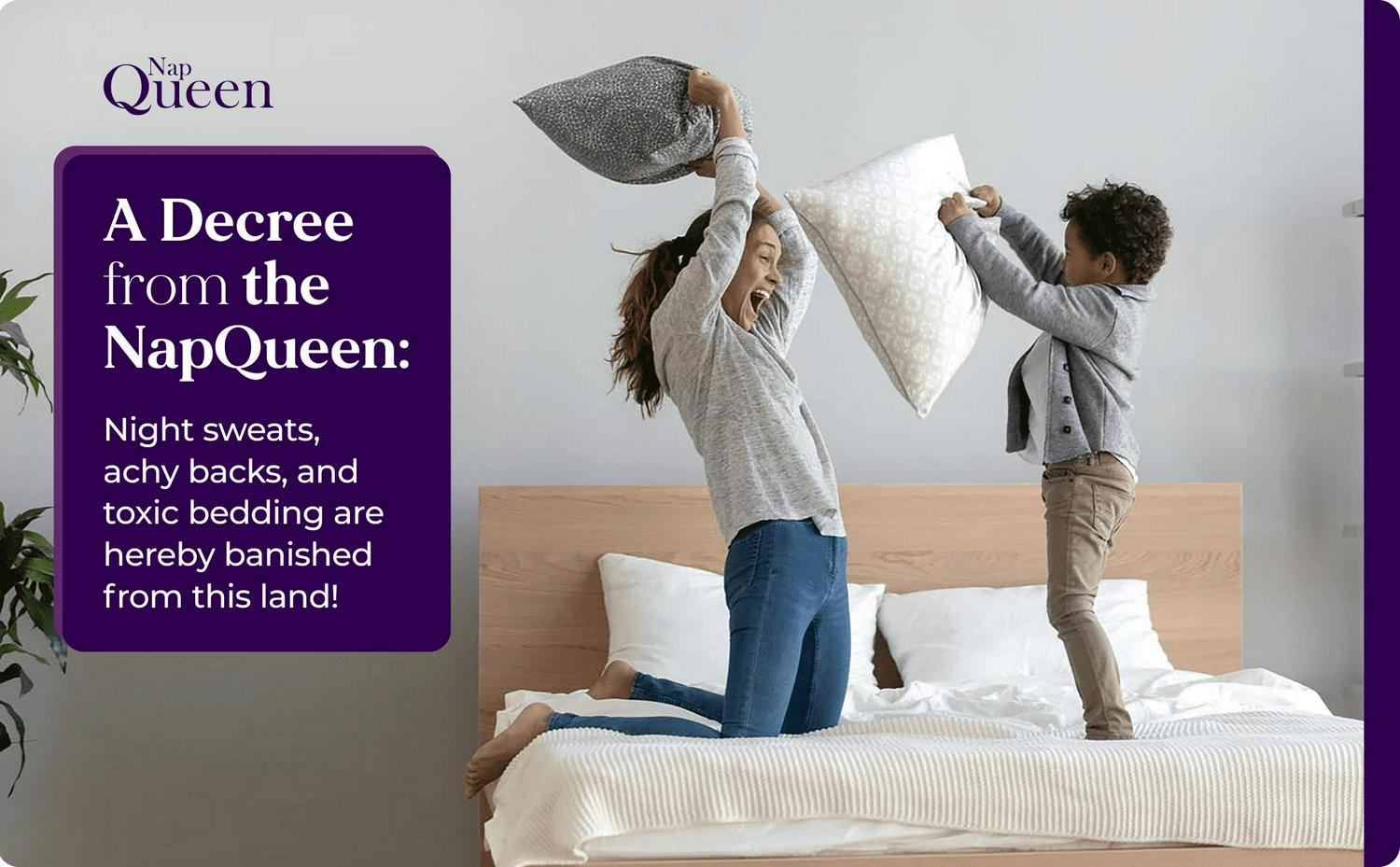 Step into the NapQueen s fantastical court and you ll never want to leave! Let your bed in a box keep your skeleton straight, your muscles softly cradled, and your mind rested and ready for all your royal business. Banish the beddings that conspired against you, and start Napping like a Queen!