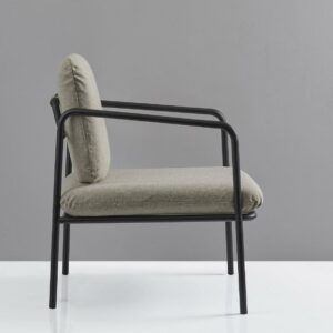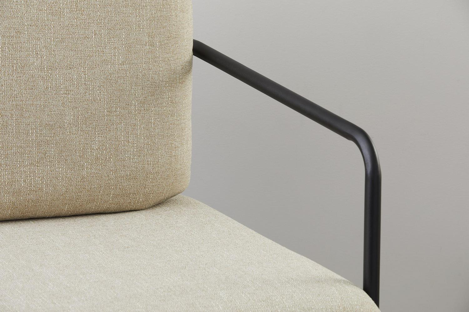 - Finish: Matte Black Metal Frame w. Textured Light Beige Fabric Cushions