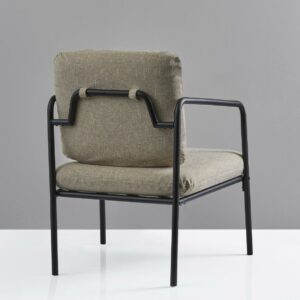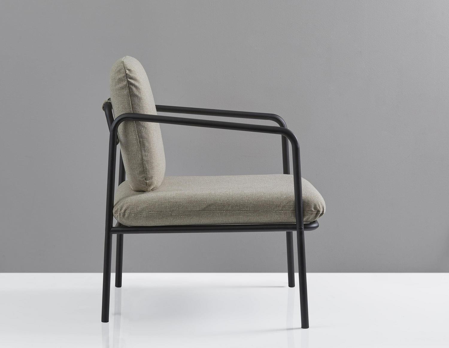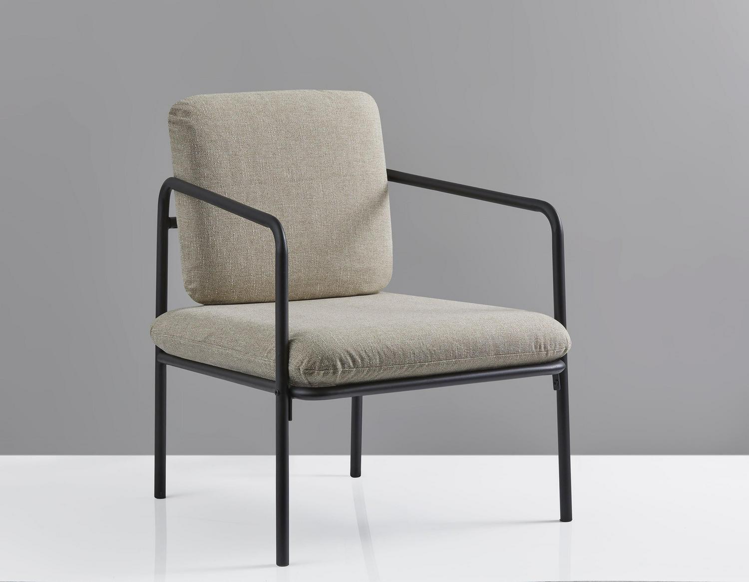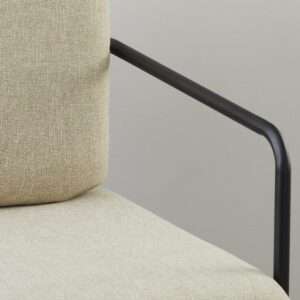 A chic, minimalist style, the Nathan Chair adds modern flare to any living space. Durable machine washable fabric cushion covers facilitate convenience and product longevity. A matte black metal frame adds an industrial touch while a textured light beige fabric softens the look.