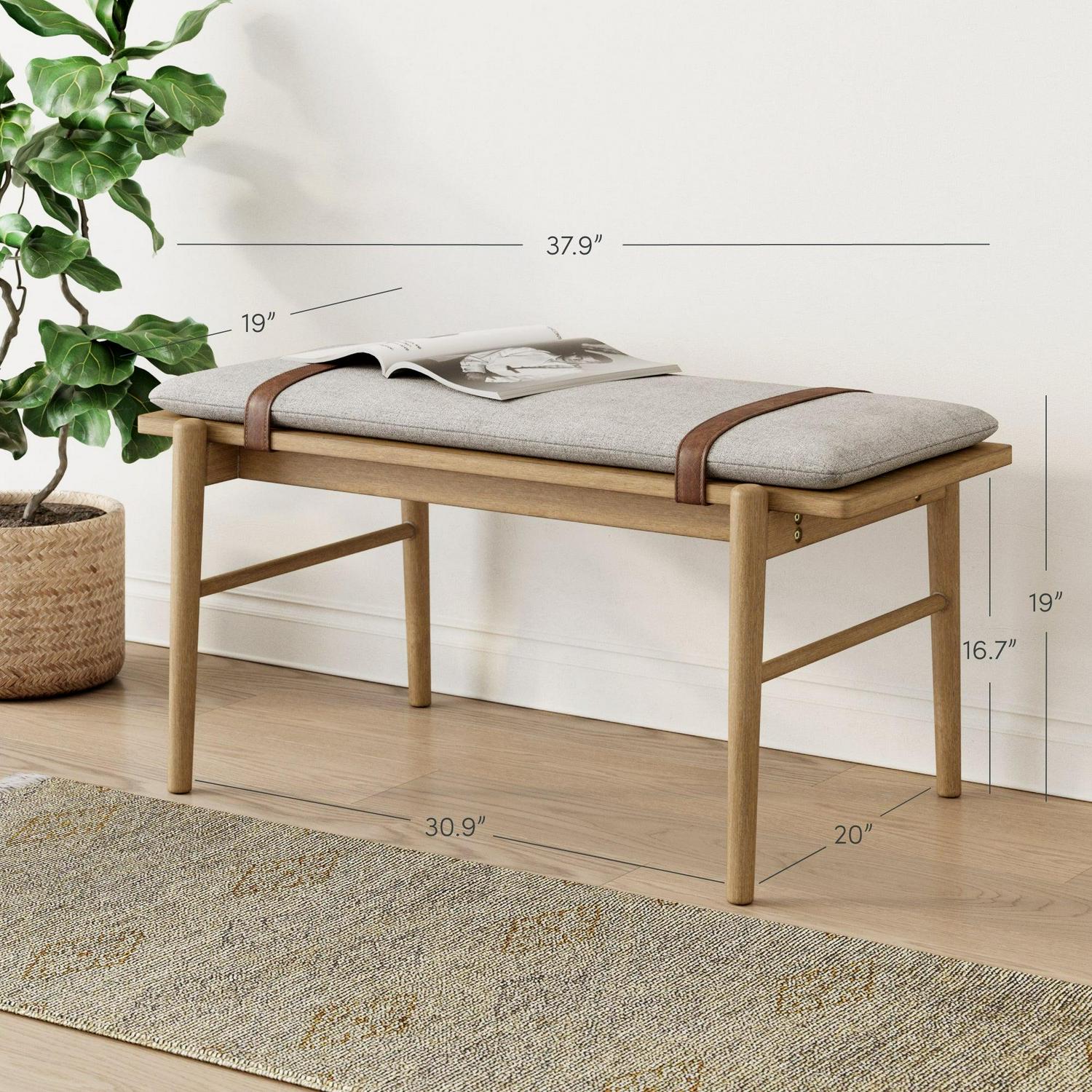 Nathan James Gugan Mid-Century Light Brown Bench with Removable Ivory Cushion for Bedroom and Hallway