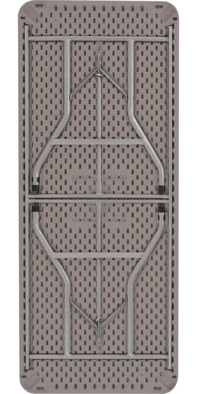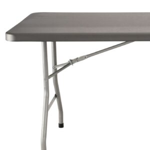 Our BT3000 Series rectangular blow-molded plastic folding tables are the perfect solution for banquet and cafeteria use. Suitable for indoor or outdoor in any application that calls for affordable, lightweight, weather-resistant and highly durable folding tables. The plastic tabletop is heat-resistant up to 212º F and designed with a non-bowing eggshell structure for fortification to hold up to 1000 lbs. of distributed weight! The tabletop color is a charcoal slate matching the textured silver powder-coated 17-gauge steel frame.