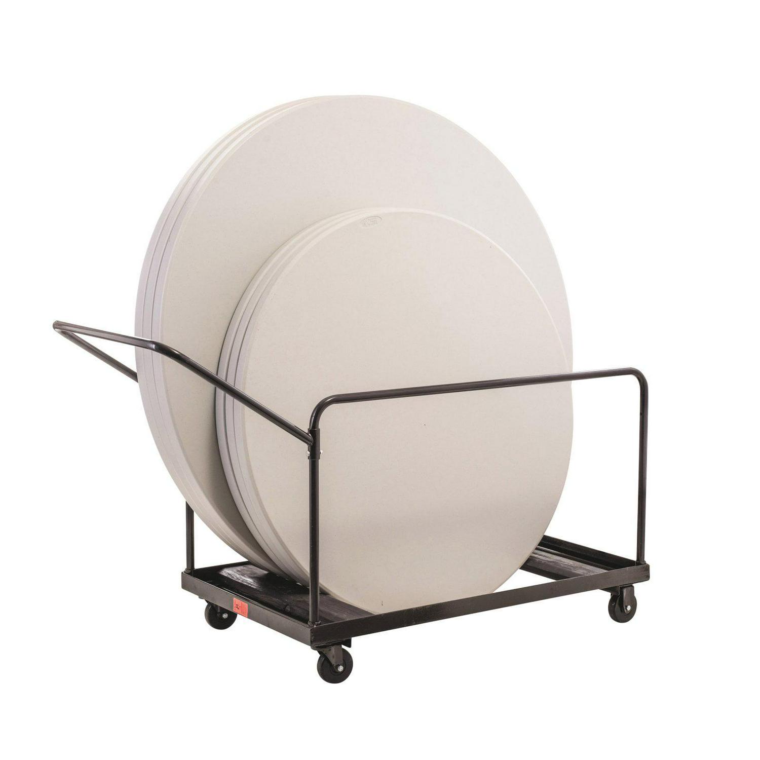 – Works with virtually any round plastic or laminate folding tables. 2 fixed and 2 swivel casters for easy transportation. Features 2 tubular handles for stability and easy handling.