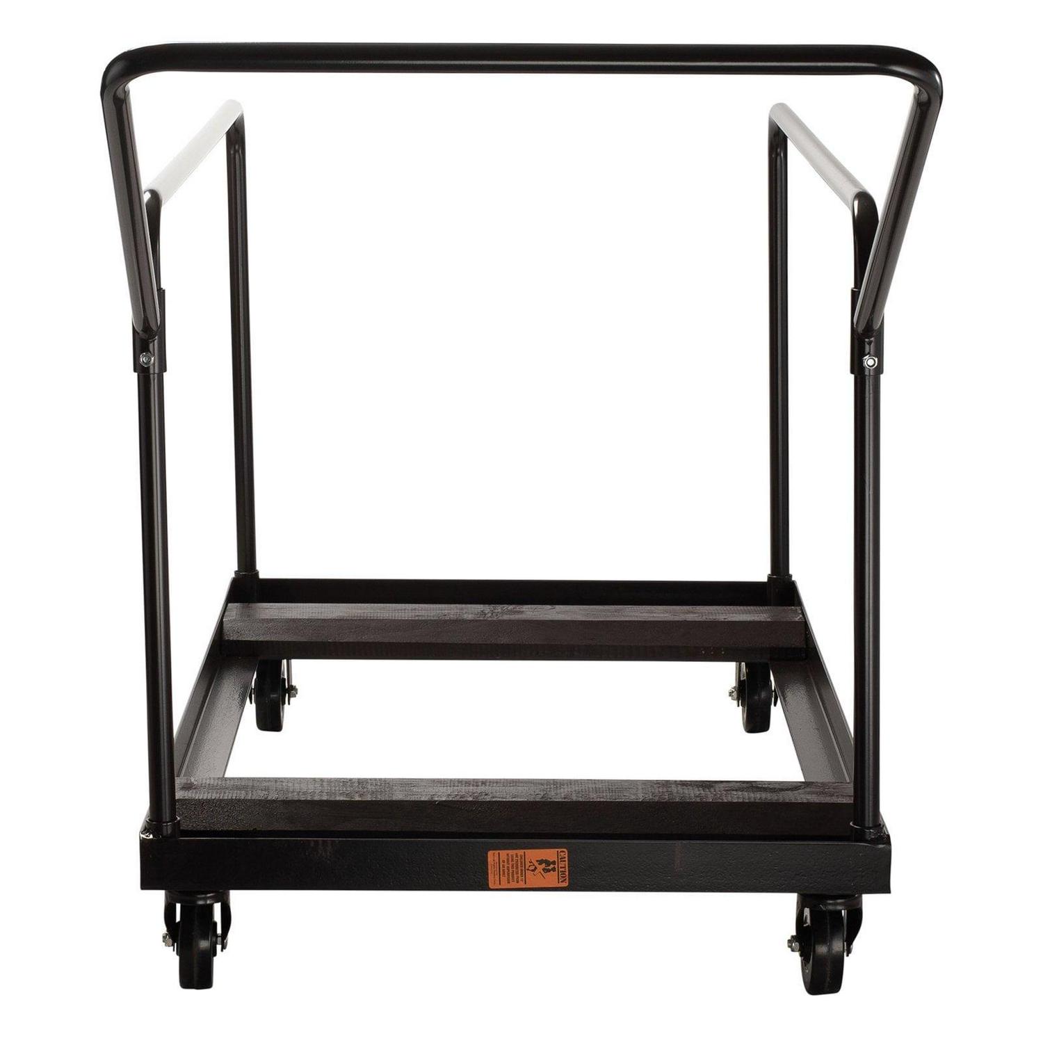 – Powder coated dark brown heavy duty angle steel. Makes storing and transporting folding tables easy. 2 durable handles for easy pushing/pulling. Powder-coated steel construction.