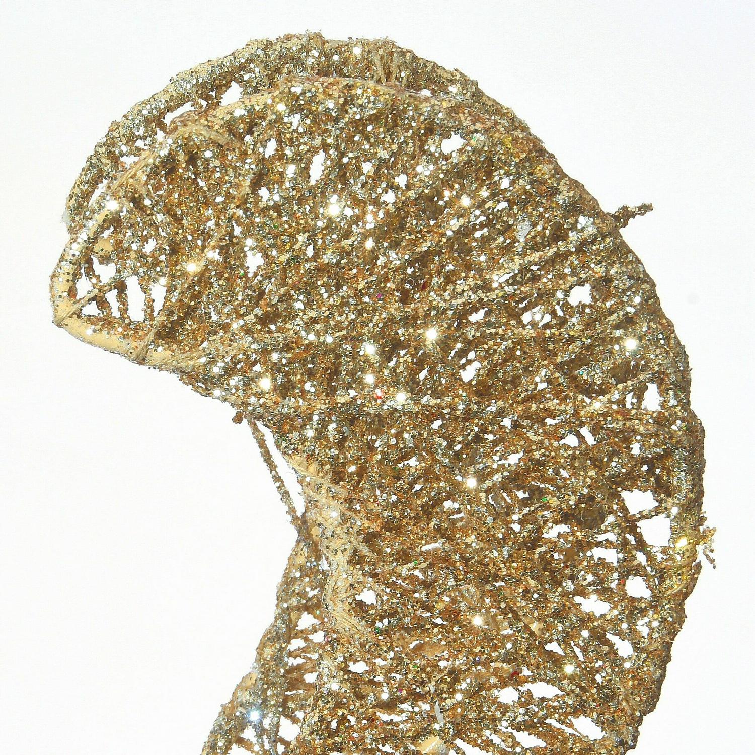 – Decoration features a standing reindeer and matching white and gold sleigh made from sisal fabric wrapped around a wireframe core